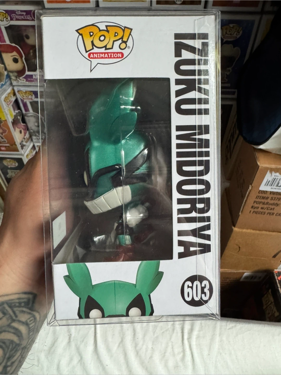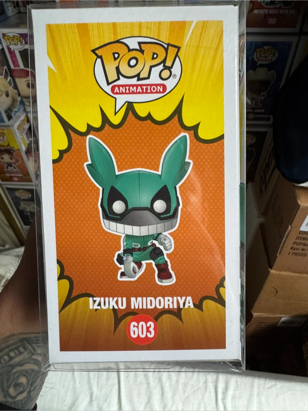 Selling a Funko Pop! Animation figure of Izuku Midoriya from My Hero Academia. This is figure #603. It's in great condition and comes in its original box!