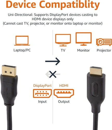 Amazon Basics DisplayPort to HDMI Cable, 3FT