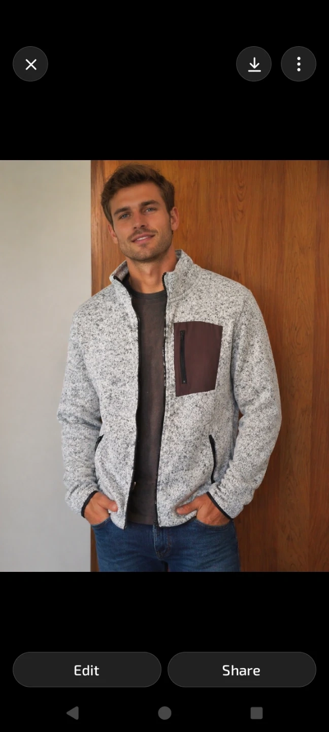 This is a men's speckled fleece jacket with a full zip-up closure. It features a contrasting maroon zippered chest pocket and side pockets. The material is soft fleece, perfect for cooler weather.