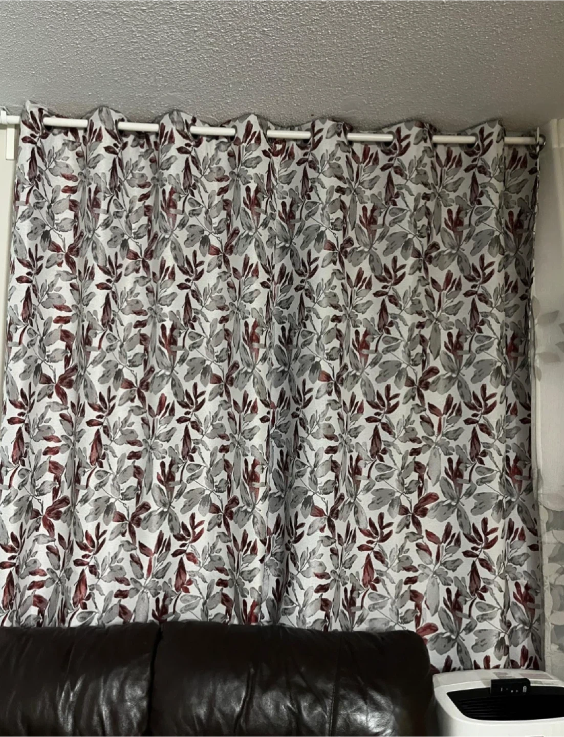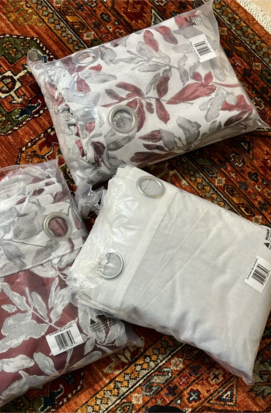 2 grey/red floral panels that block out the sunlight, three sheer/grey panel (can use as liner). 5 total pieces.