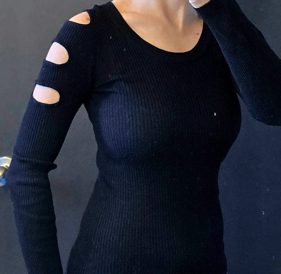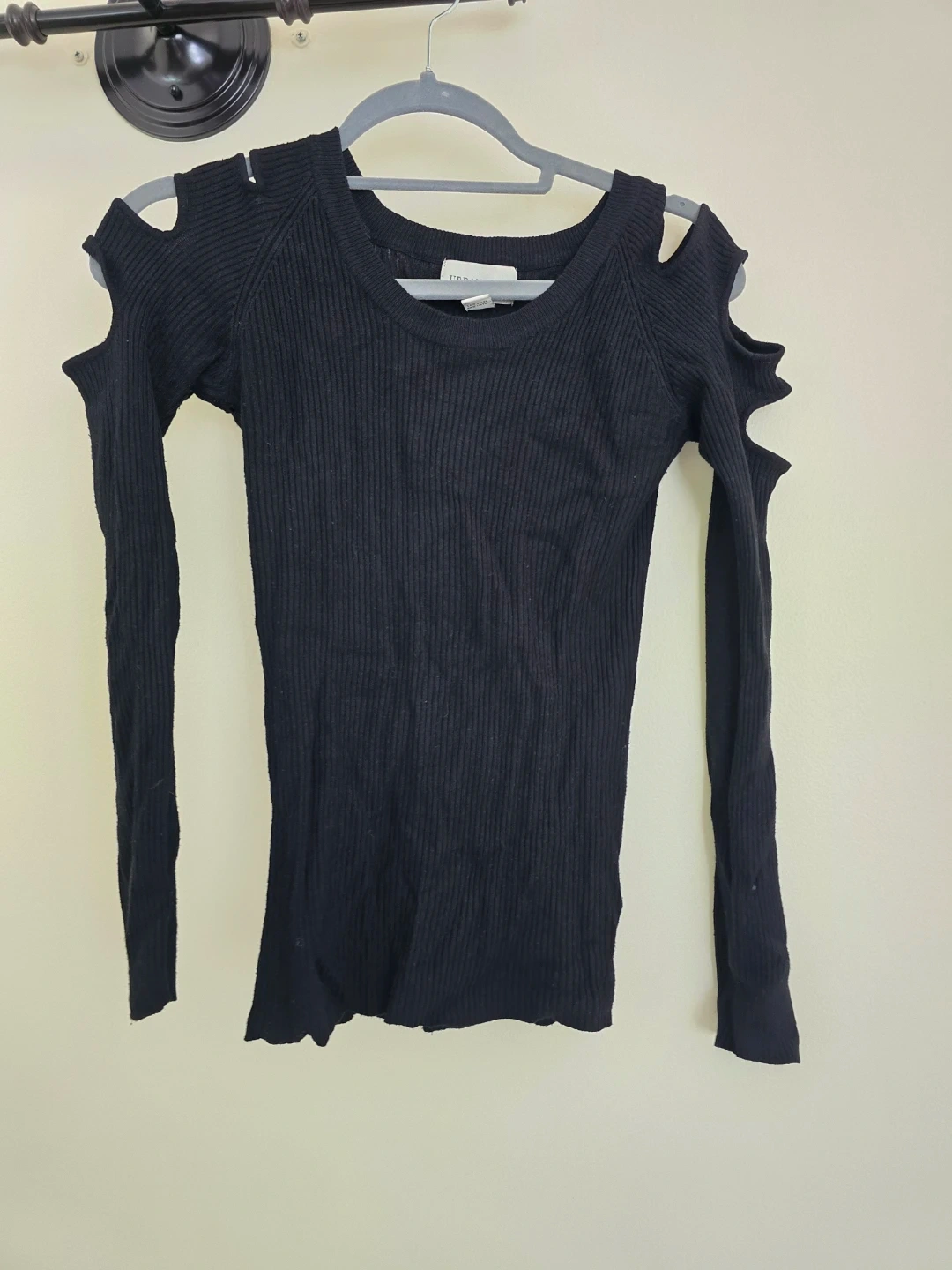 Urbanology Black Shoulder Cut-Out Long Sleeve Top