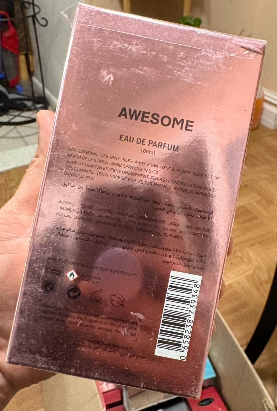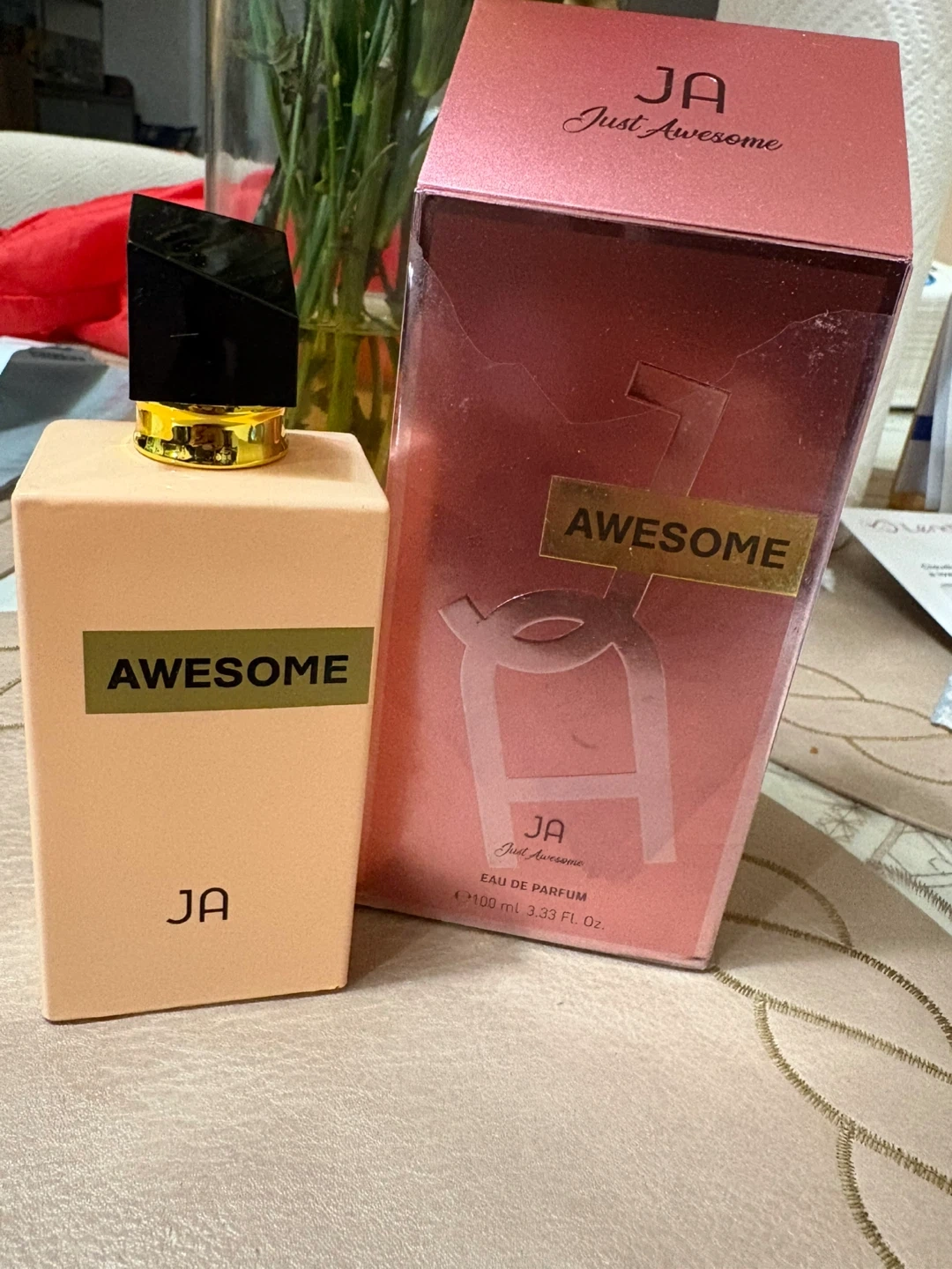 This is the JA Just Awesome Eau de Parfum. It's a 100ml bottle with 3.33 FL. OZ. This fragrance is for external use only. It's great for anyone who enjoys a floral and fruity scent.