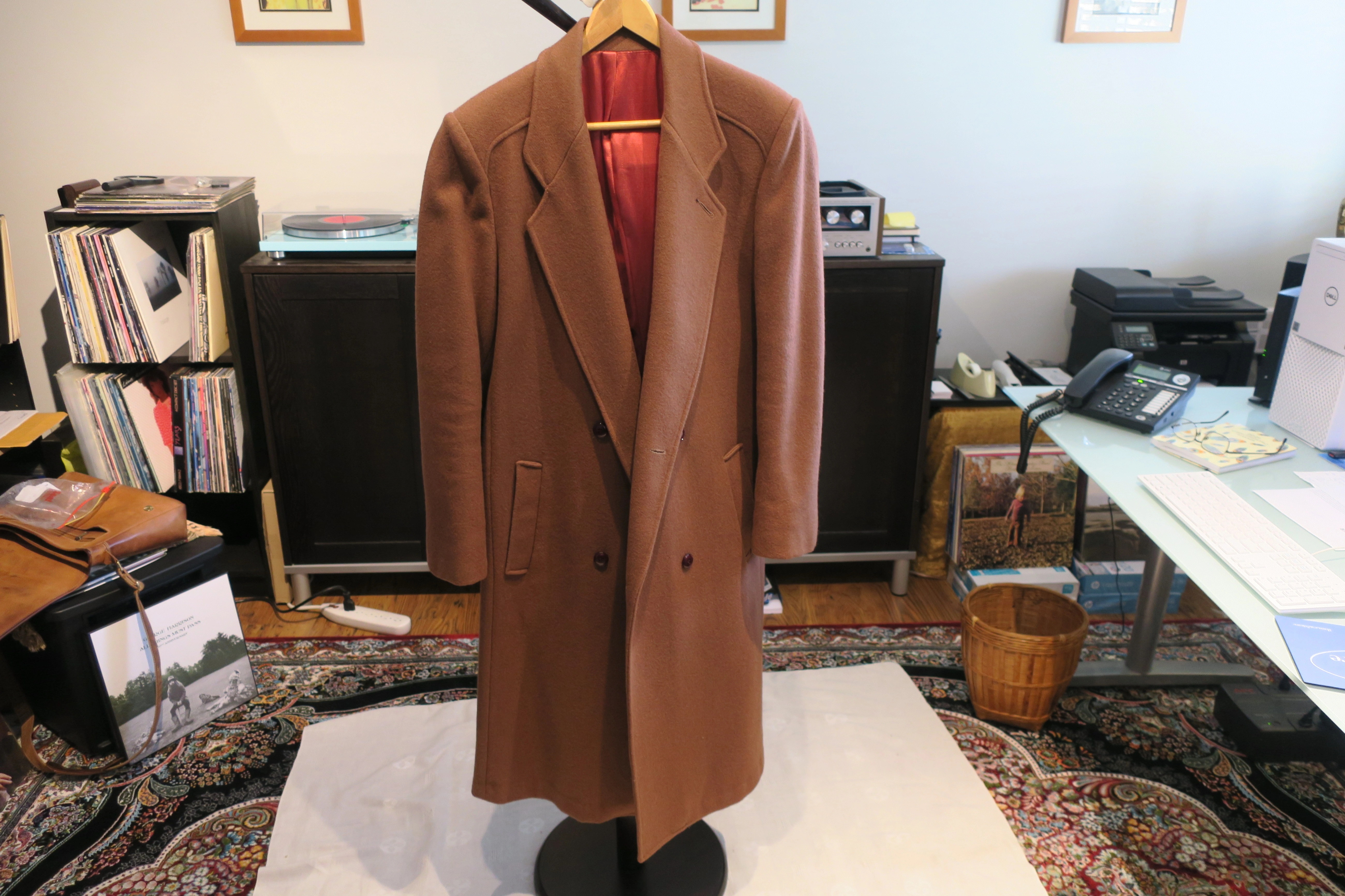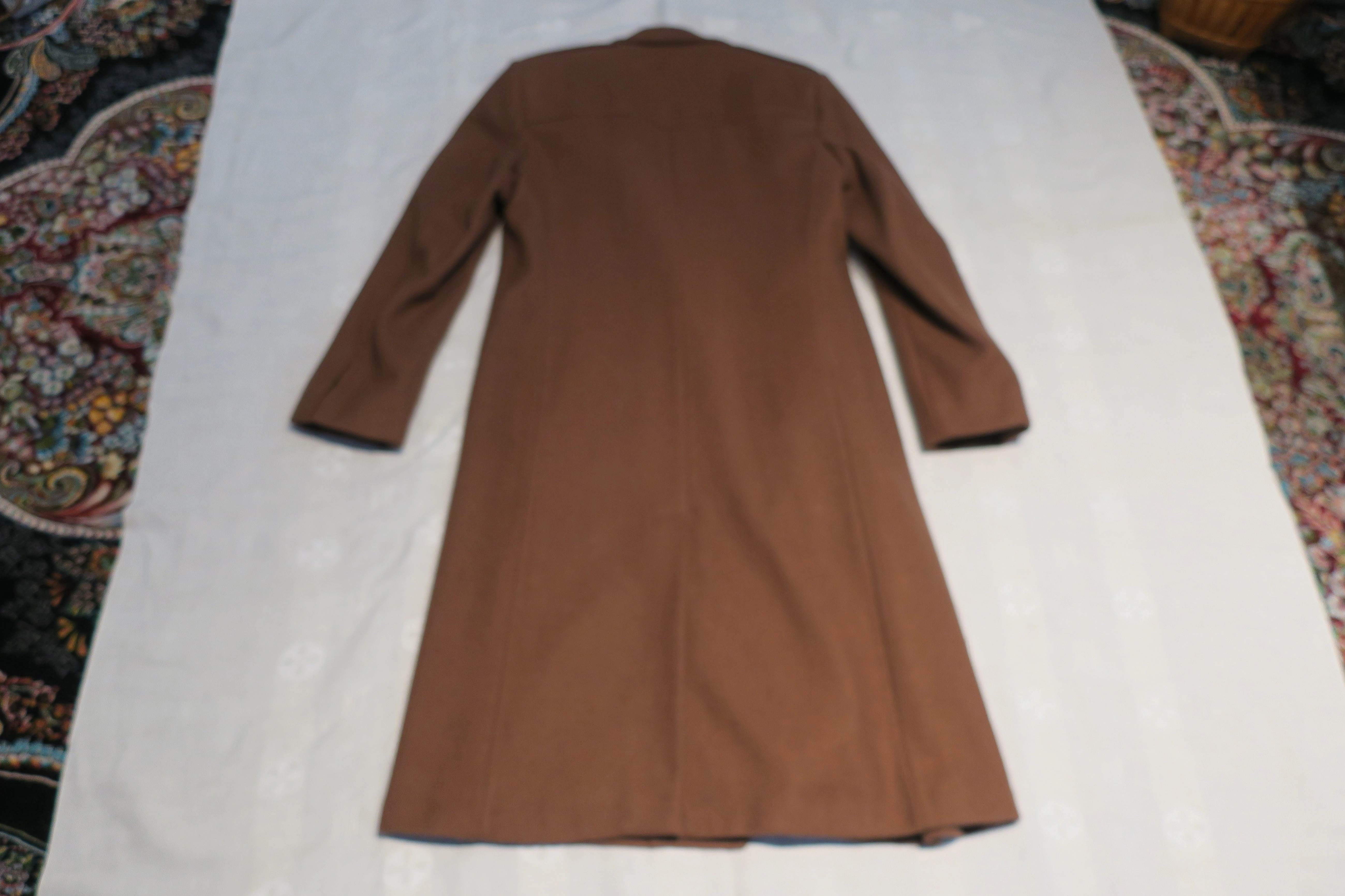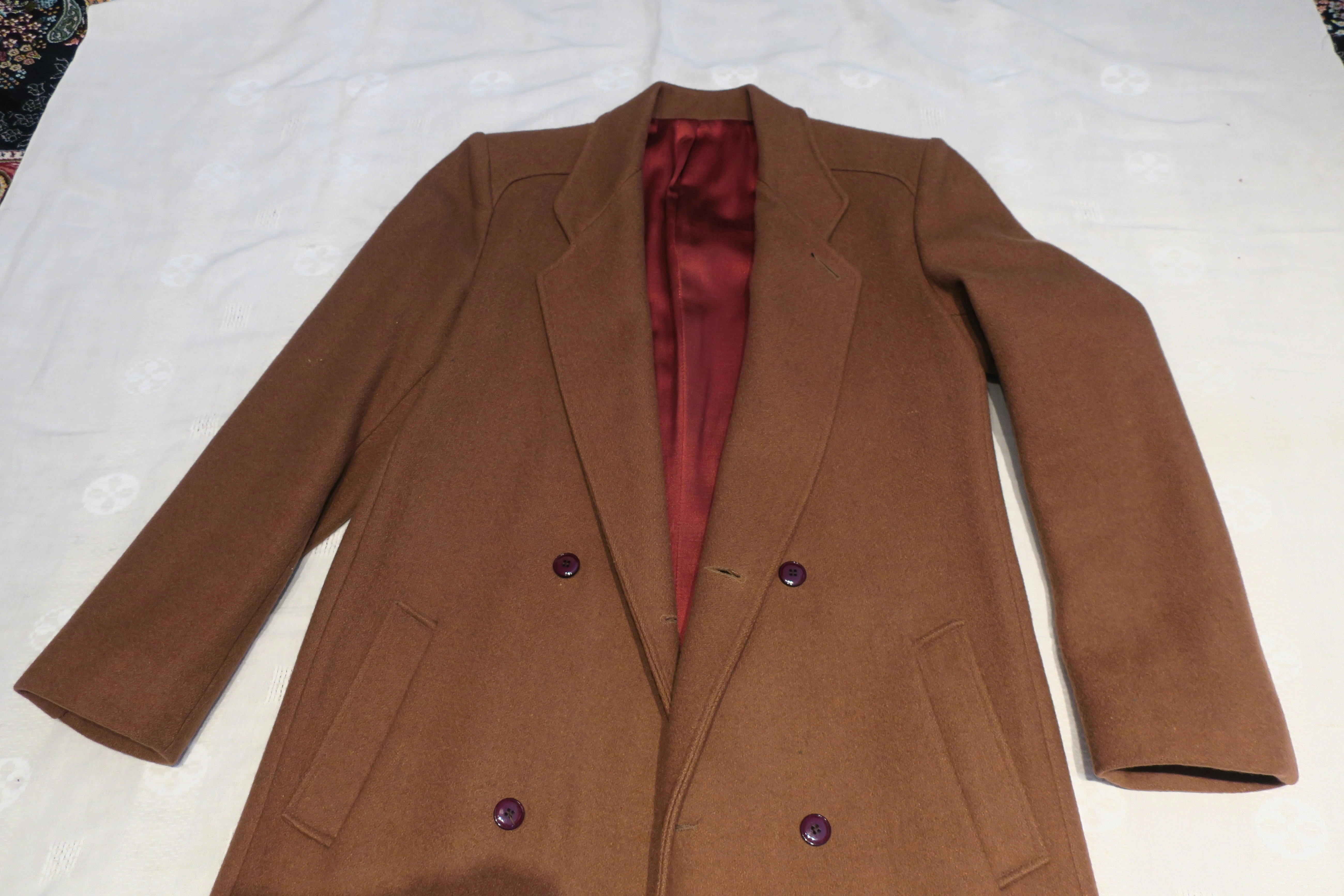 Kaid Men's Long Coat in excellent like NEW condition only worn a handful of times. There is no size indication on the lining. My size is 40 to 44 depending on the manufacturer of the coat. Top of collar to bottom is 46" Shoulder to Shoulder is 18" Sleeve top to bottom is 25" Coat is heavy and very well made. This is a fine quality Men's Long Coat looking for a new owner.