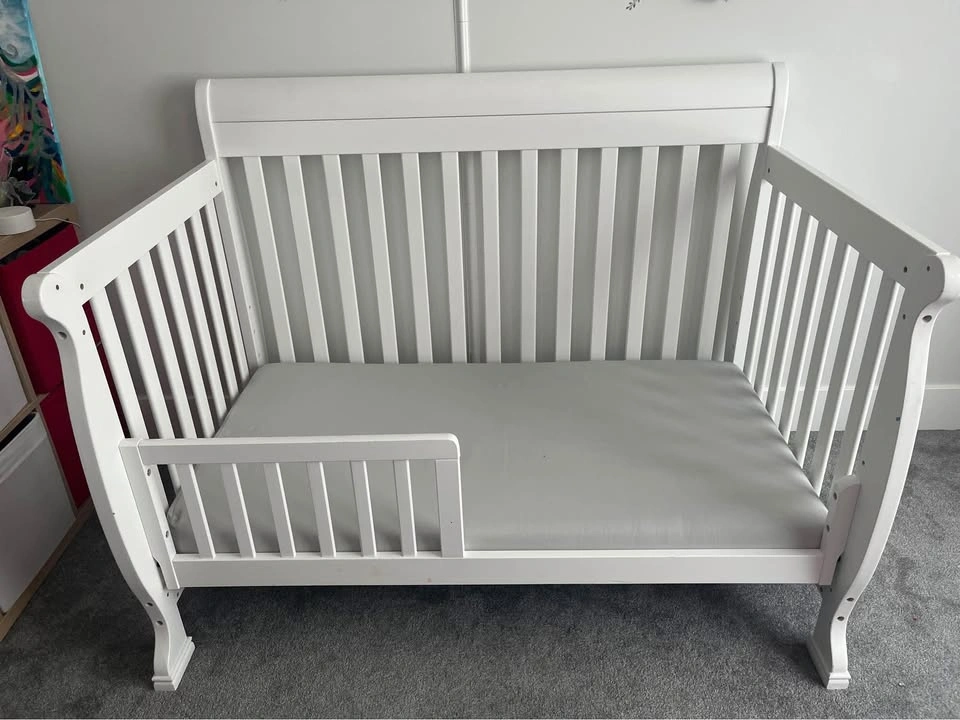 12Pick up in Capitol Hill. Crib (new for $450) + convertible side for toddler version (included $150) as pictured + waterproof mattress (DaVinci’s line of non-toxic, GREENGUARD gold, waterproof mattresses $200 included in price) + mattress sheets ($20 included in price). Versatile, Kalani 4-in-1 Crib features gentle curves and sturdy construction that can be converted for use as a toddler bed, day bed and full-sized bed. Constructed from 100% natural solid New Zealand pine wood, this GREENGUARD Gold Certified crib makes a safe and eco-conscious sleep haven for your little one. Safe, sturdy, and easy to assemble. GROWS WITH BABY: 4 adjustable mattress positions that you can lower as your baby begins to sit and stand. We've built this crib to withstand even the most active babies and toddlers and last through your child's teen years. MATTRESS COMPATIBILITY: DaVinci’s line of non-toxic, GREENGUARD gold, waterproof mattresses.