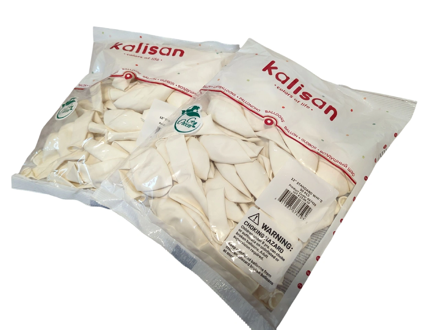 10Selling two packs of Kalisan 12" standard white balloons. Each pack contains 50 pieces. Perfect for parties and events!