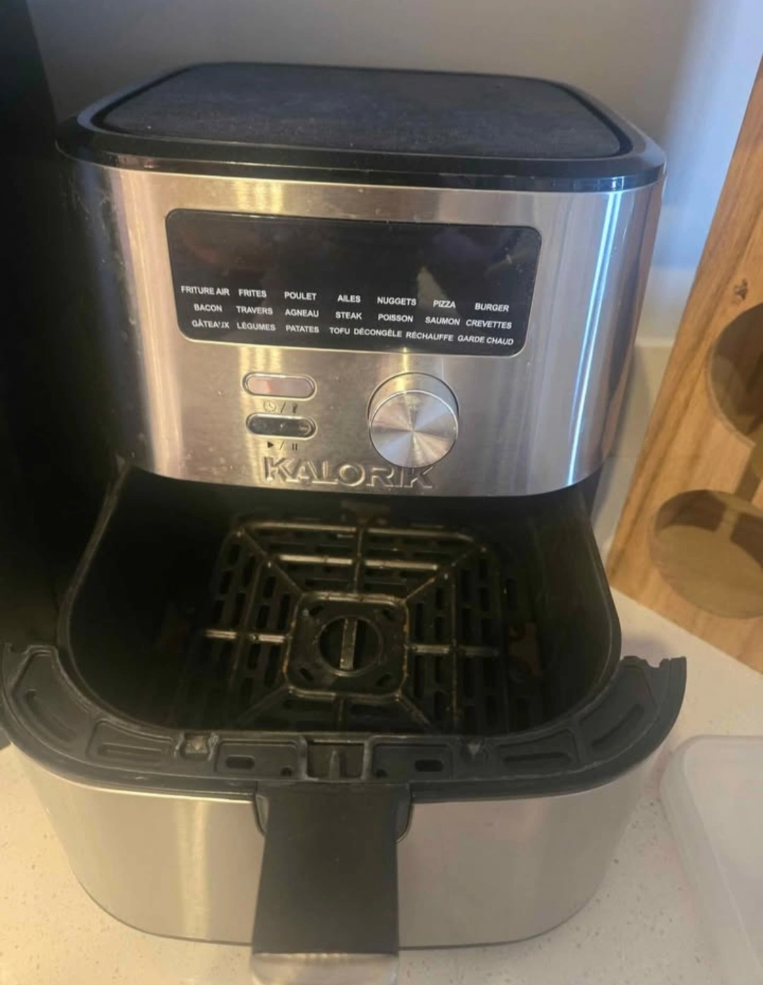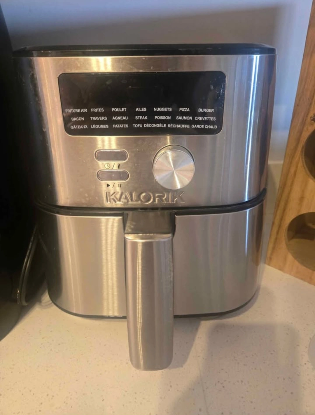 Stainless steel air fryer. Digital controls. Various cooking options. Used condition.