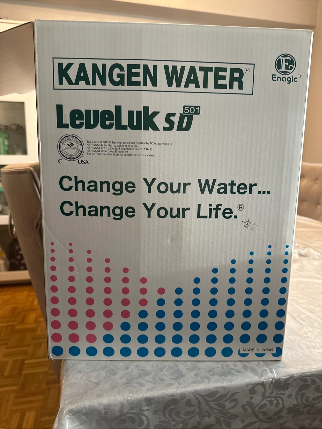 84Selling a brand new Kangen Water LeveLuk SD501 water ionizer, still sealed in its original box! It comes with all the original components and accessories, including the instruction manual and various attachments. Change your water, change your life!