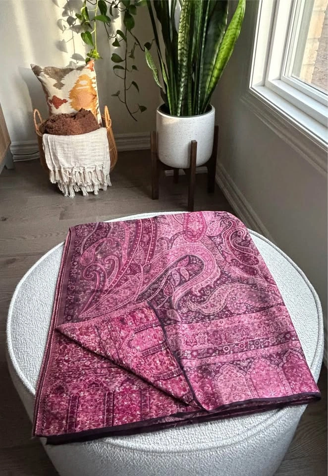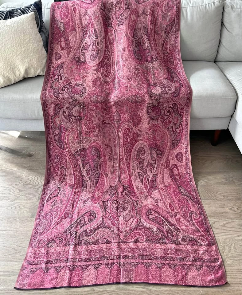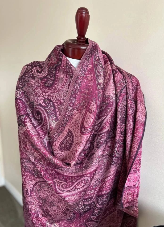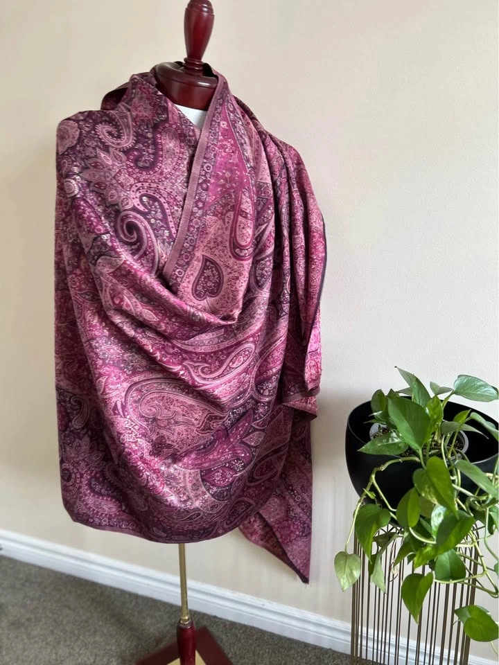 One-of-a-kind, full-size Kani Woven Shawl made from a soft Pashmina blend with Zari weave. It features classic paisley motifs. The shawl is made from a woolen Pashmina blend.