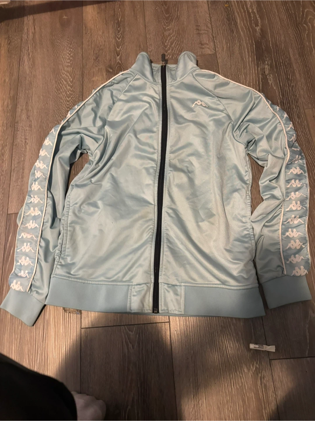 Selling a light blue Kappa track jacket. It features the iconic Kappa logo down the sleeves. It's in great condition and ready for a new home!