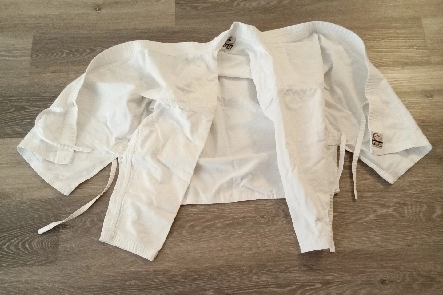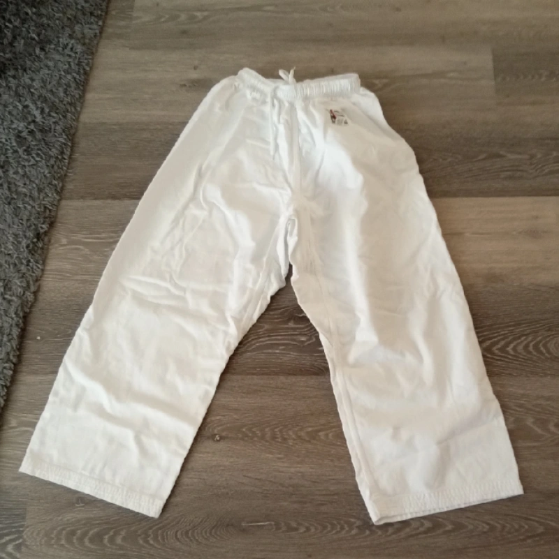 87Karate set, including the jacket, pants, and white belt. It's in good condition, size 3.Fabric is 100% cotton.