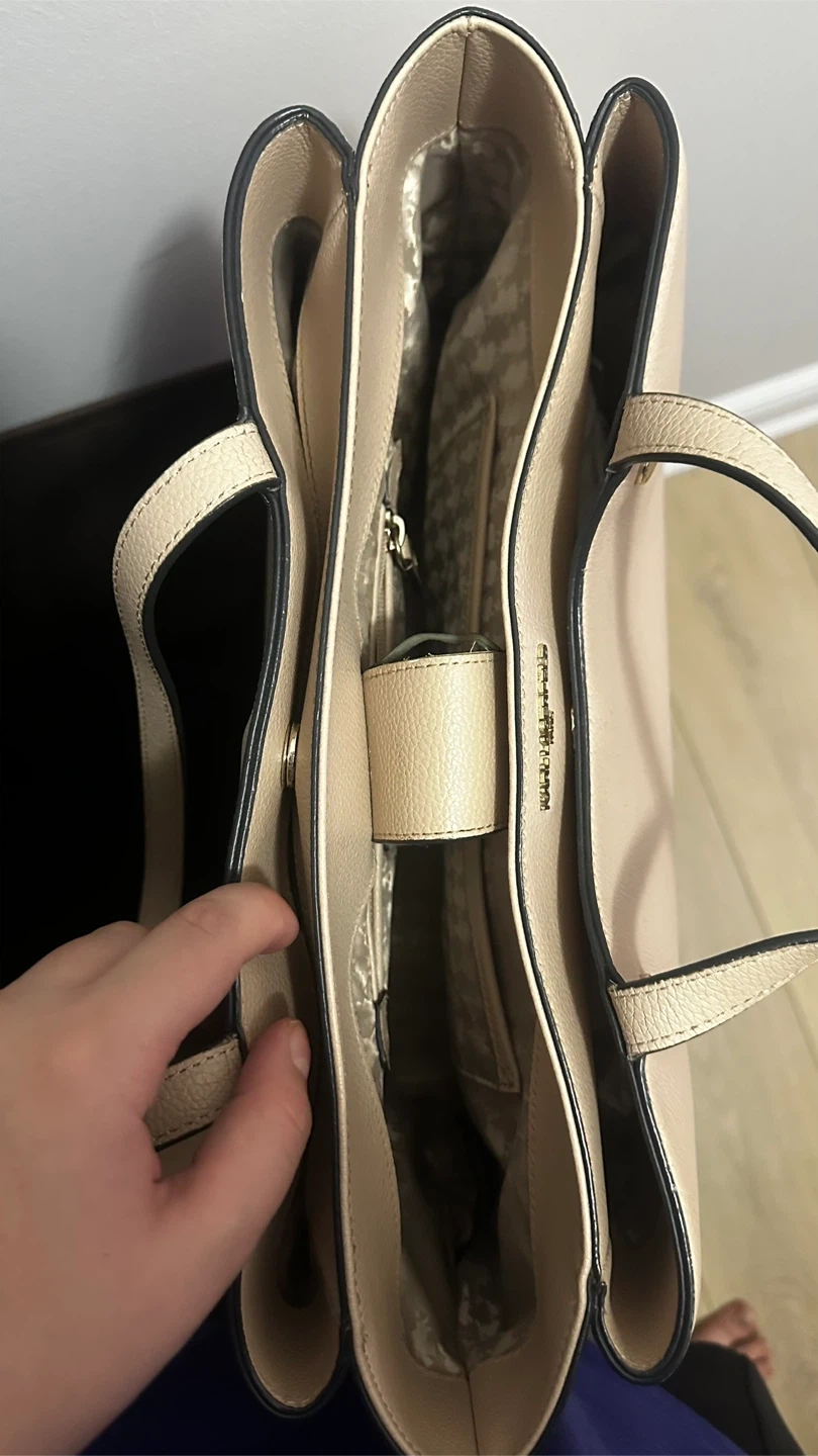 Gently used Karl Lagerfeld Paris tote bag in a lovely beige colour! It's in great condition and ready for a new home. Perfect for everyday use or as a stylish accessory