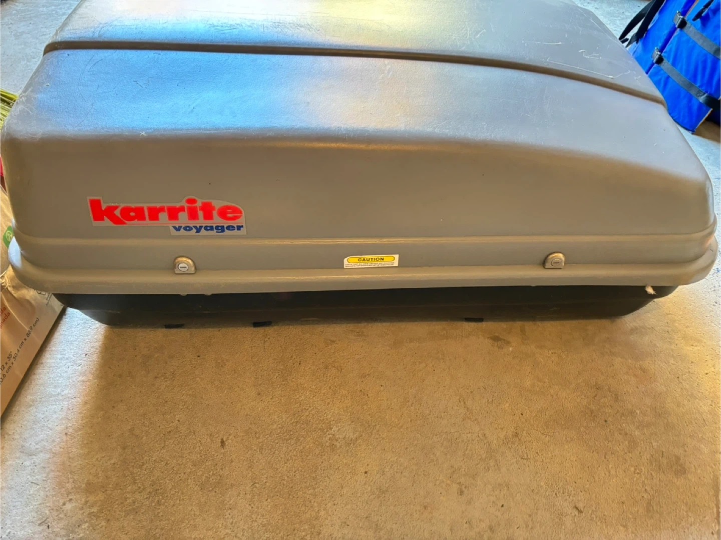 Selling a Karrite Voyager car top carrier. It's in good condition and ready to help you haul your gear on your next adventure! Includes all the mounting hardware shown in the pictures. Cash only and must be able to pick up.