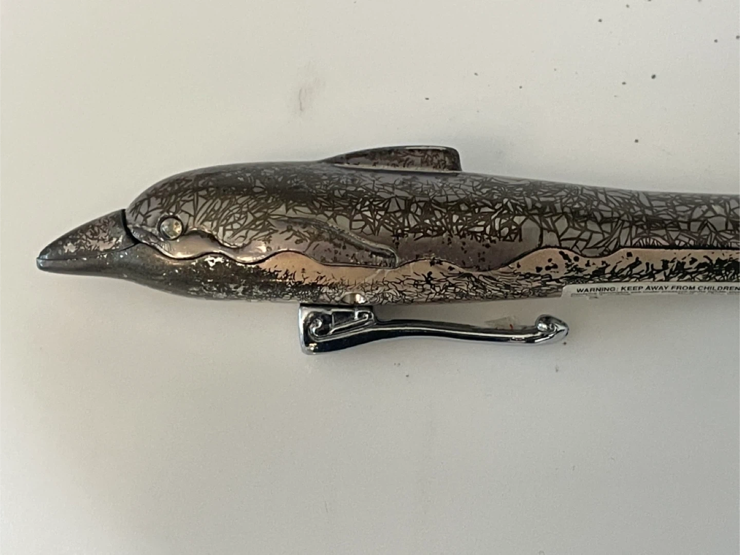 60Selling a vintage Kaschie lighter made in Canada, along with a unique dolphin-shaped pen/lighter Both items show minor signs of wear and age, adding to their vintage charm. The pen has intricate designs and a clip for easy carrying. Perfect for collectors or anyone who appreciates unique writing instruments!