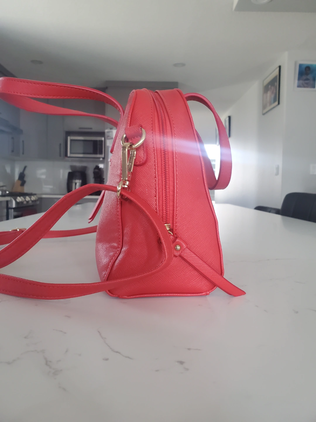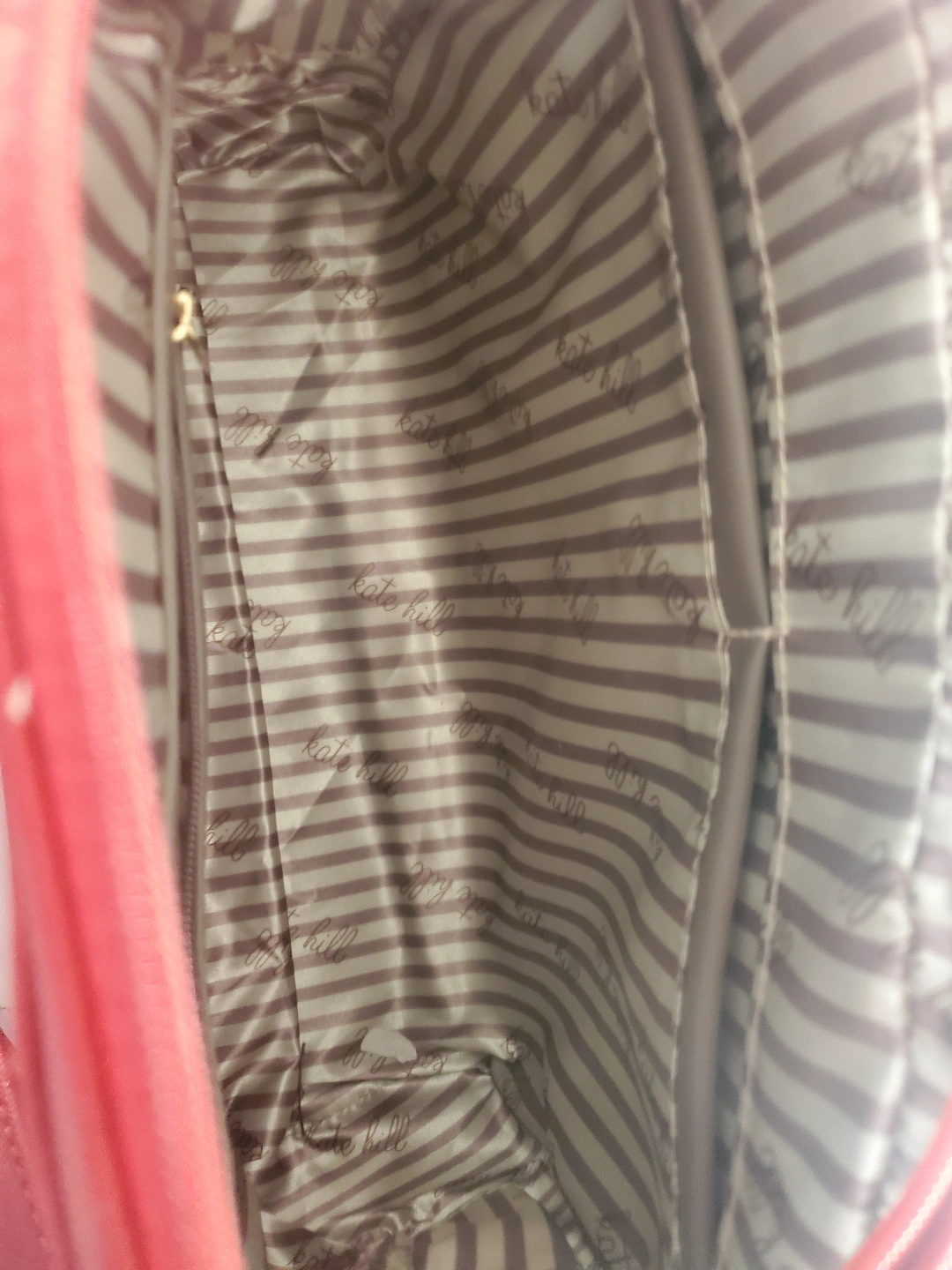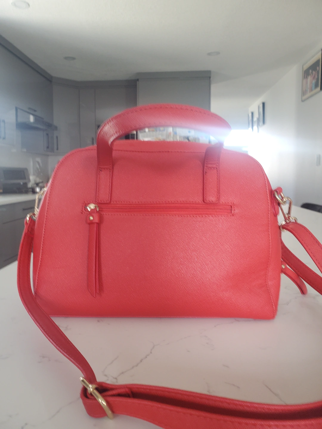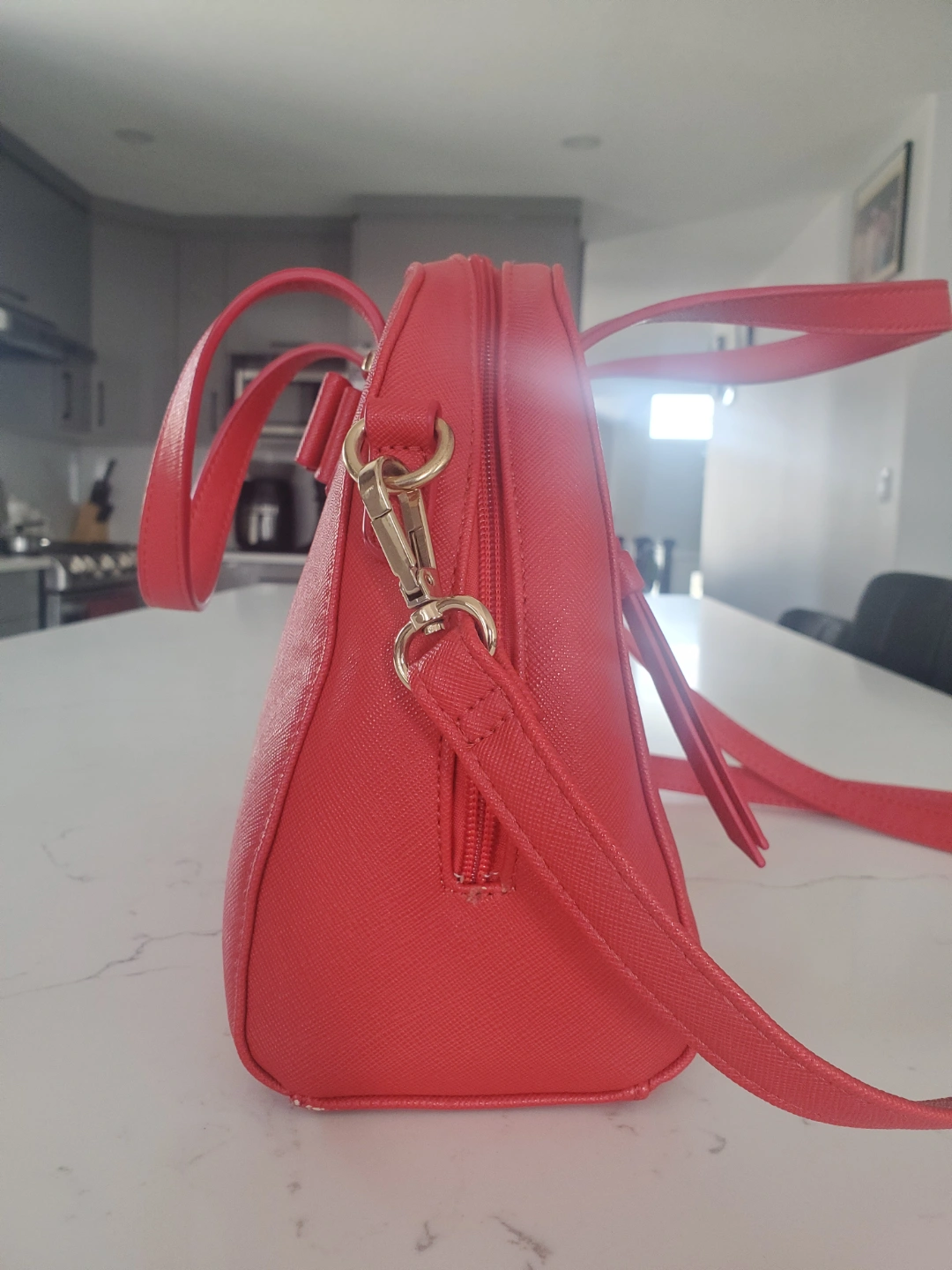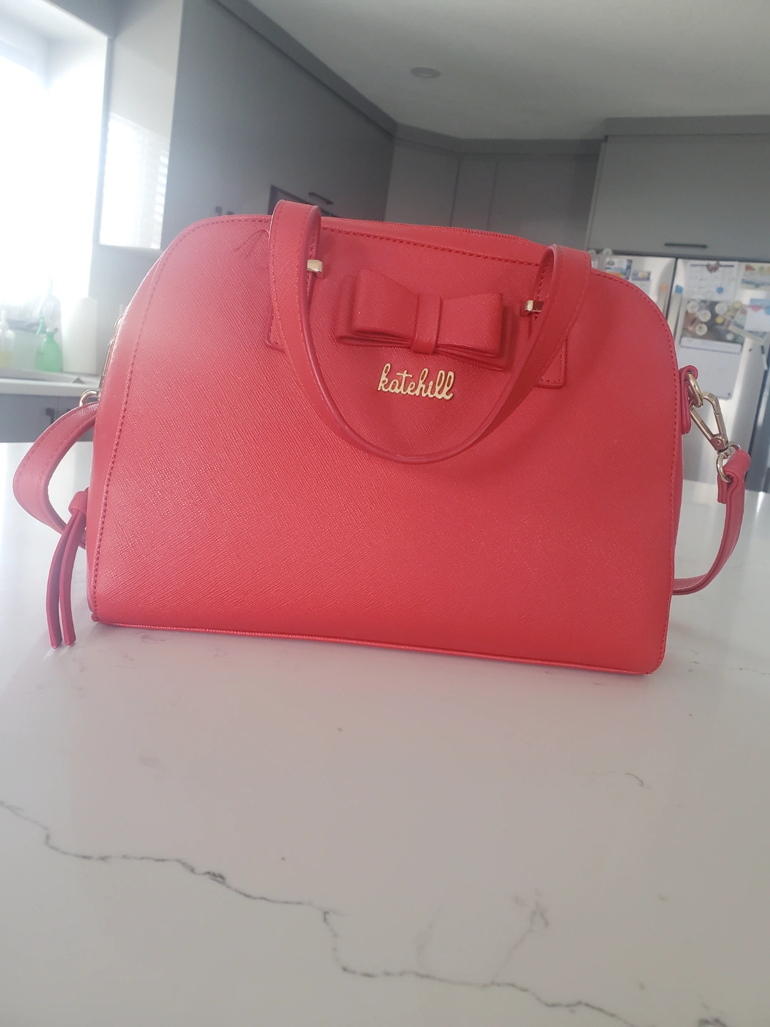 Adorable coral pink satchel. Features a bow detail, zip closure, adjustable strap and interior pockets. Perfect for everyday use. Used once