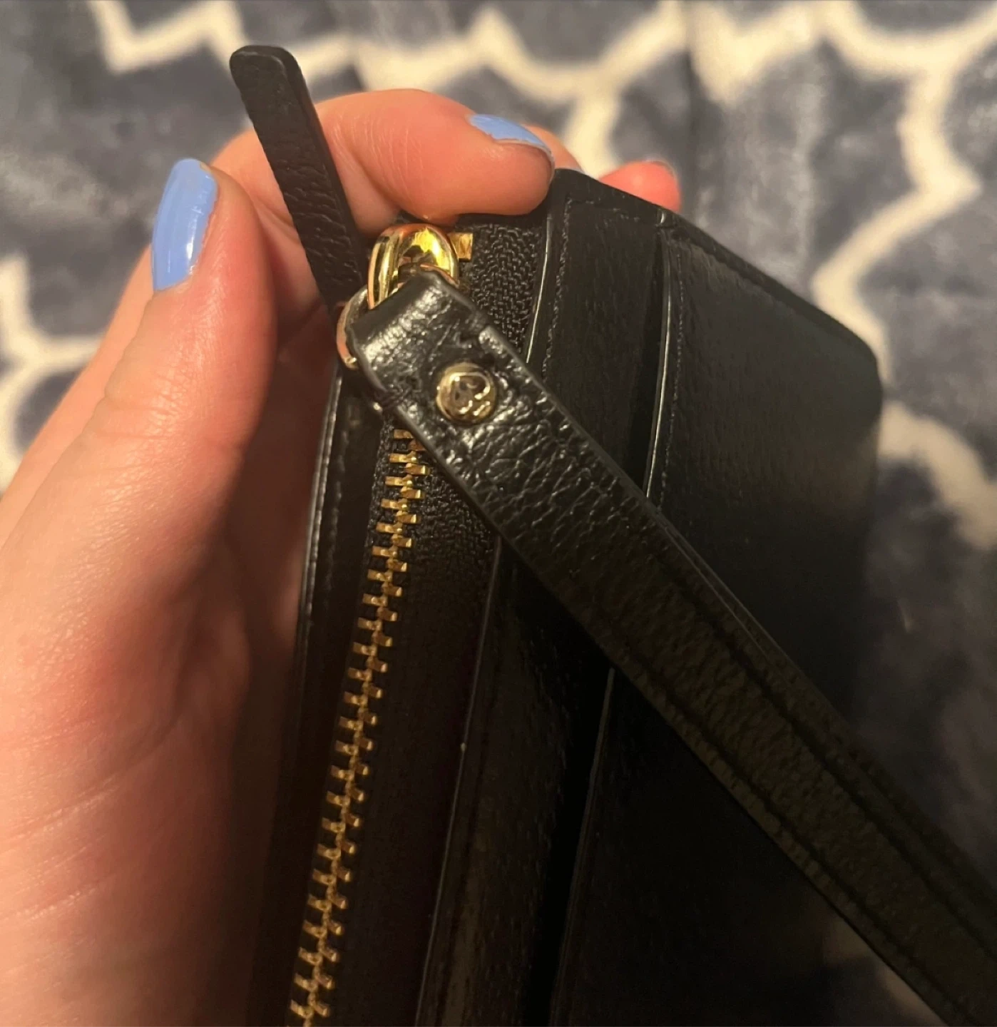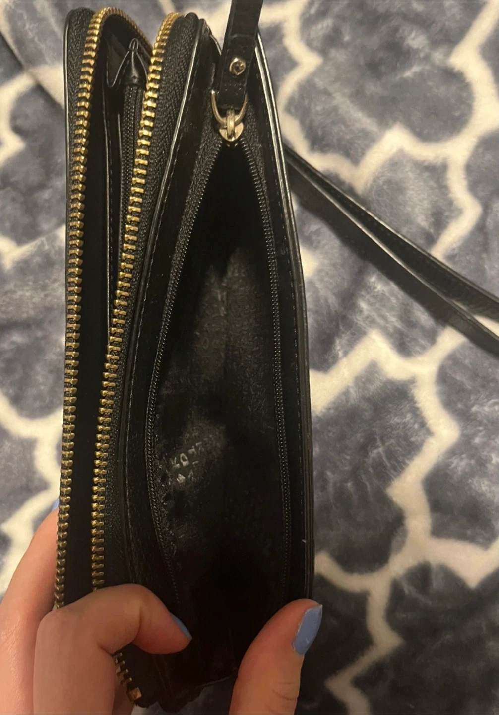 148Chic and functional Kate Spade black clutch in excellent condition β barely used! π Features: β’ Sleek black design with gold accents β’ 3 separate compartments for easy organization: β¨ Zippered front pocket β¨ Main compartment with 2 separate card slot sections + zippered coin purse β¨ Open back compartment Perfect for a night out or everyday essentials. Smoke-free, pet-free home. π Pickup only in Midtown Toronto