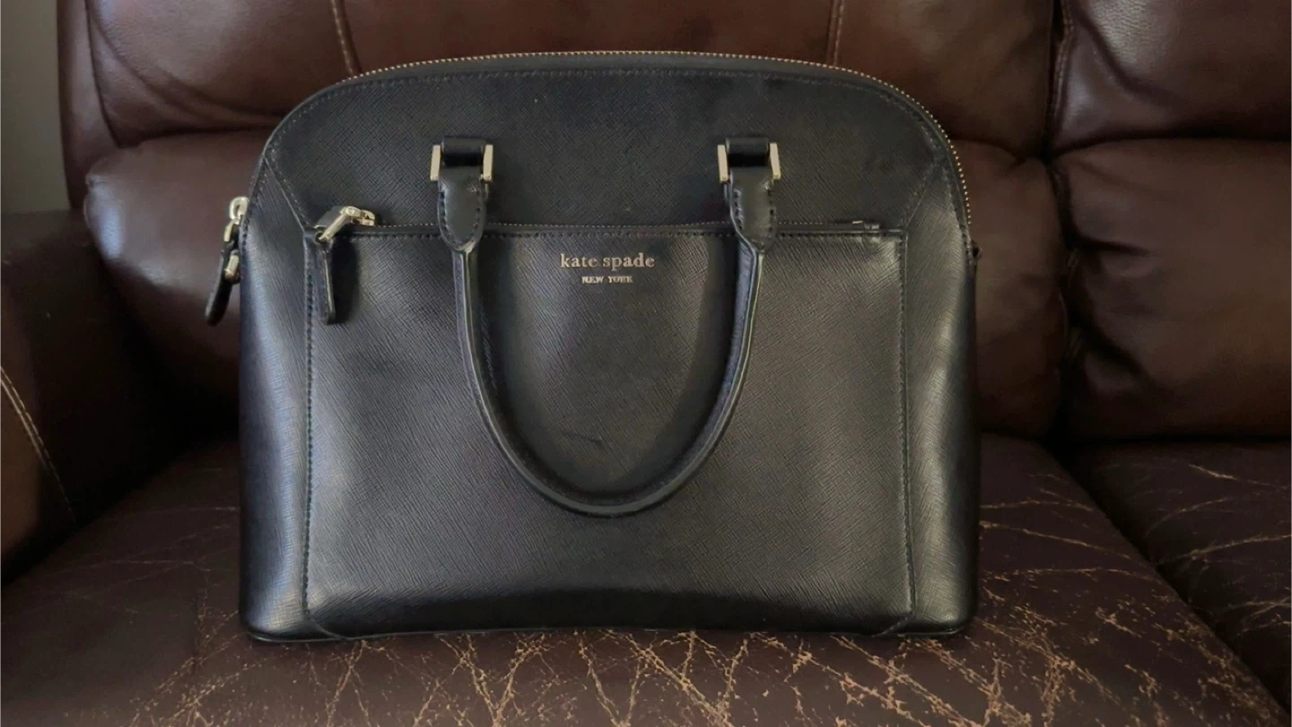 This is a Kate Spade black dome satchel. It's a stylish and versatile bag that's perfect for everyday use. It's in great condition