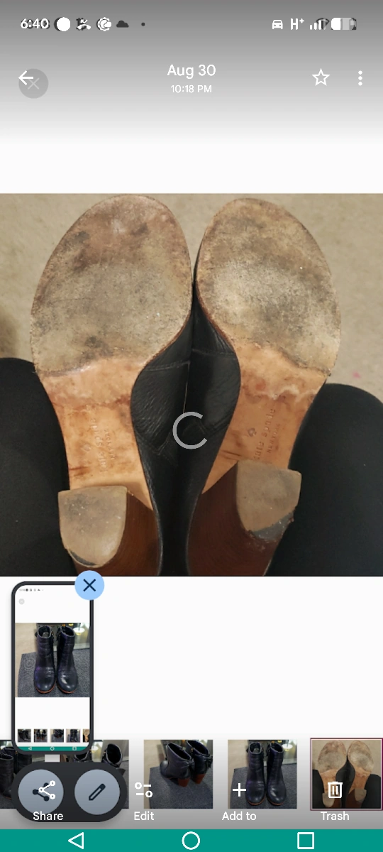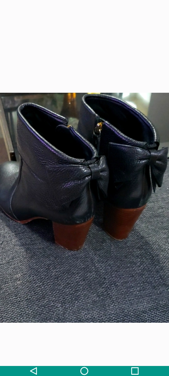 65Cute Kate Spade ankle boots in black leather! They feature a stylish bow detail at the back and a comfortable heel. Size 8. These boots are very comfortable and easy to walk in. they are in perfect condition, other then some signs of wear on one side of each heel and some signs of wear on the bottom soles. shown in the attached pictures. There is a lot of life left in these booties. I am almost positive, you could also have this repaired at a shoemaker, if you wanted to. I am not positive, I have never personally taken them to get a quote. I don't think it's that noticable, unless you are looking at the shoe when it's off your foot. but the price is reflective of this flaw. They come from a clean smoke/pet free home. I purchased these for $400.