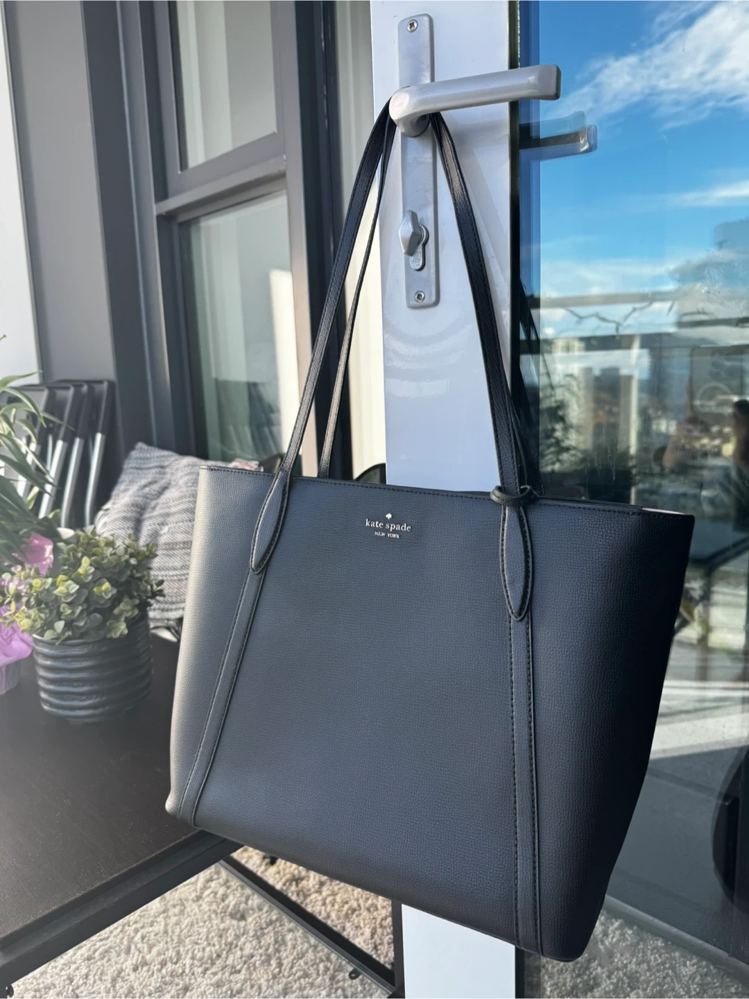 10Selling a Kate Spade tote bag in black. It's in great condition and ready for a new home! Perfect for carrying all your essentials, whether you're heading to work or running errands around town