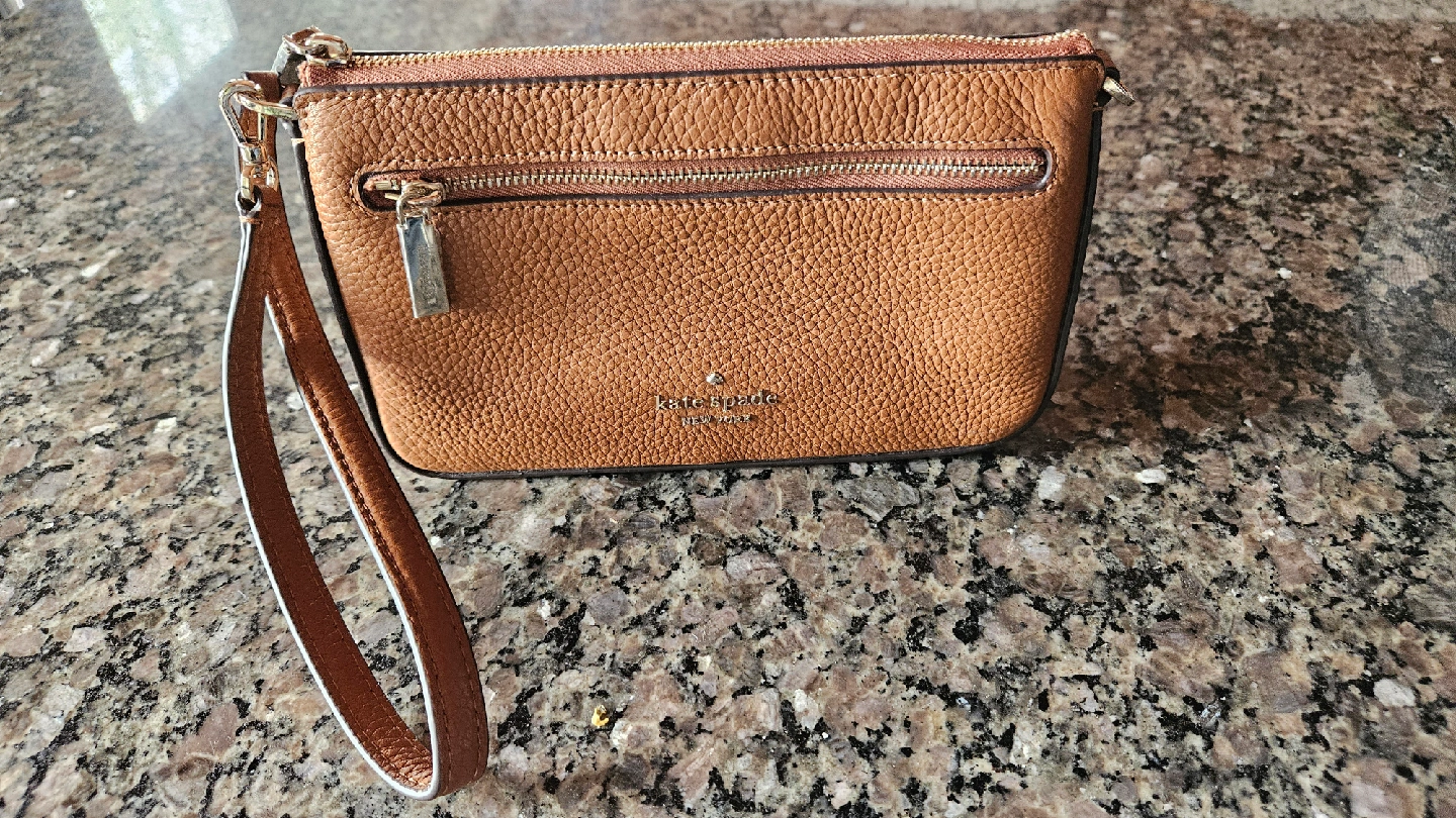 Selling a Kate Spade wristlet in a lovely brown leather. It's in great shape and perfect for carrying your essentials when you don't want to lug around a big purse. The wrist strap is super convenient, and the interior has the classic Kate Spade spade pattern. It's a stylish and practical accessory! 7.5 x 4.5 size