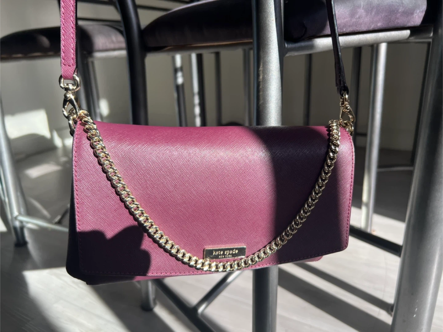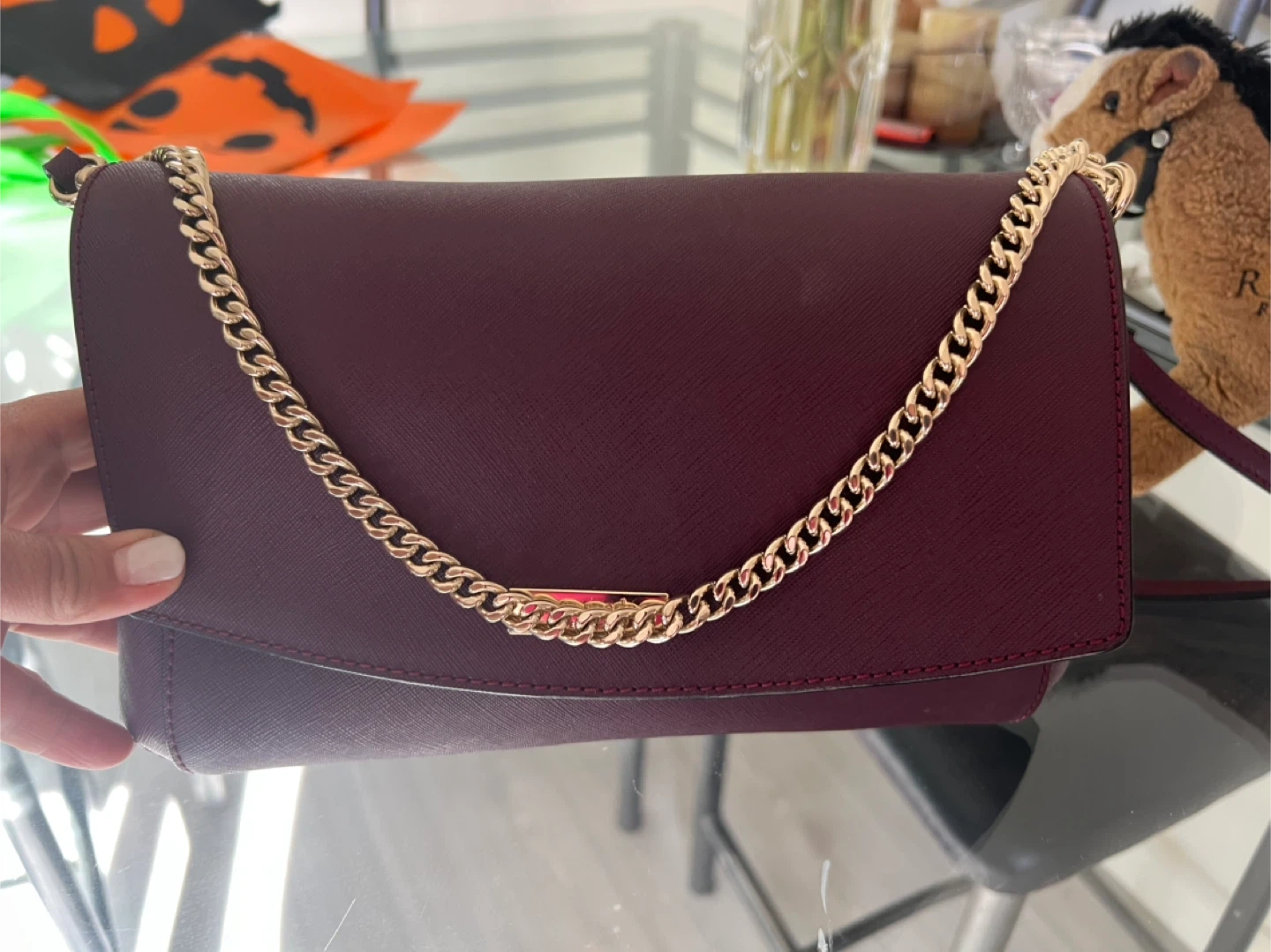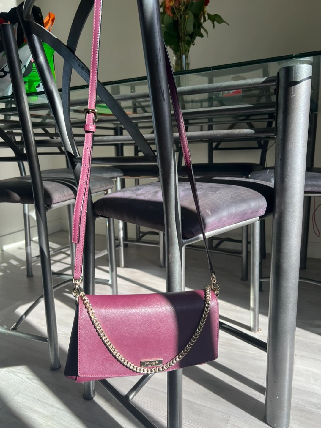 A lovely Kate Spade crossbody bag in a rich burgundy colour! It features a gold chain strap and the classic Kate Spade logo. Perfect for adding a touch of elegance to any outfit! Super beautiful use it once only Pick up or deliver