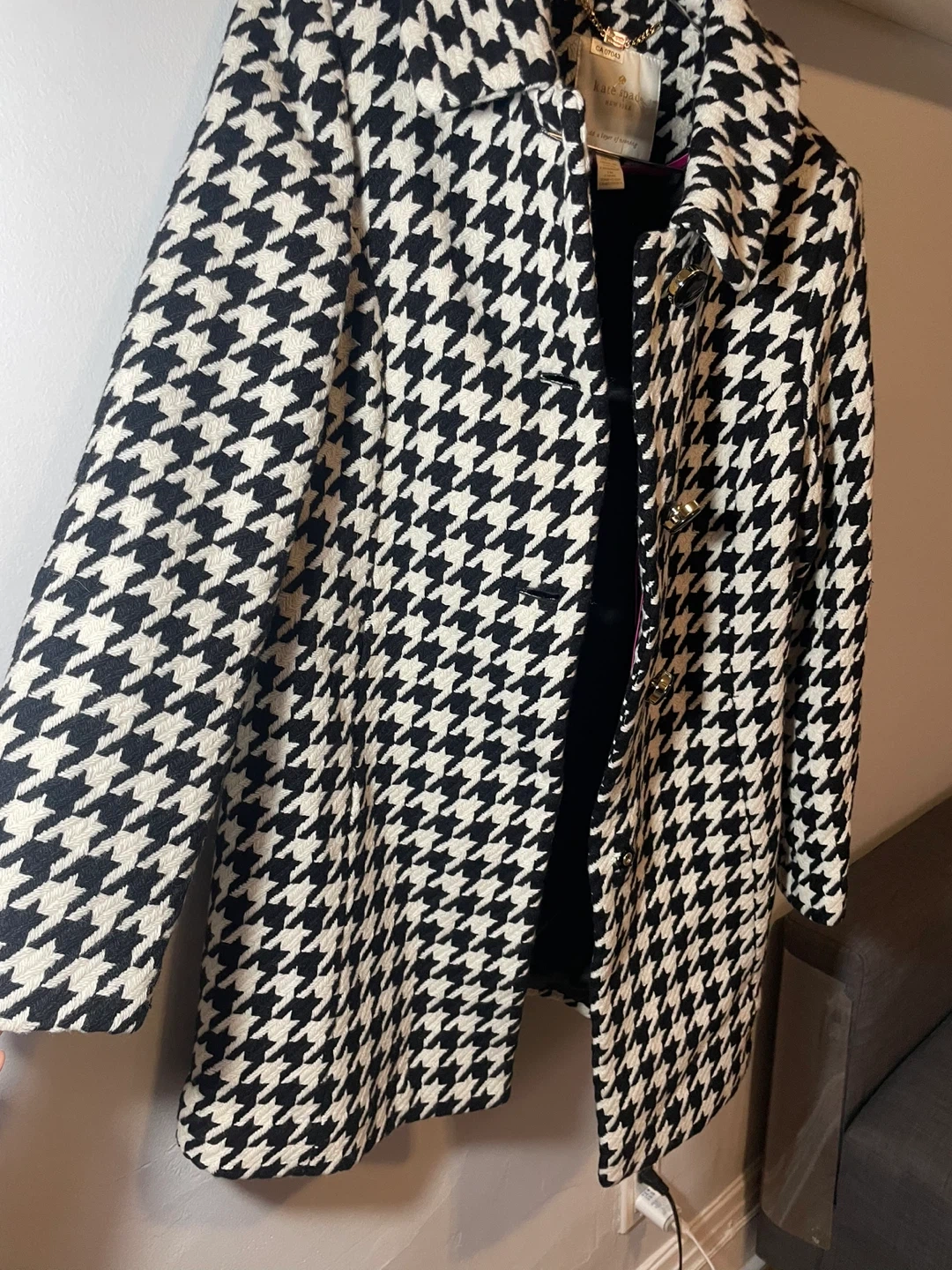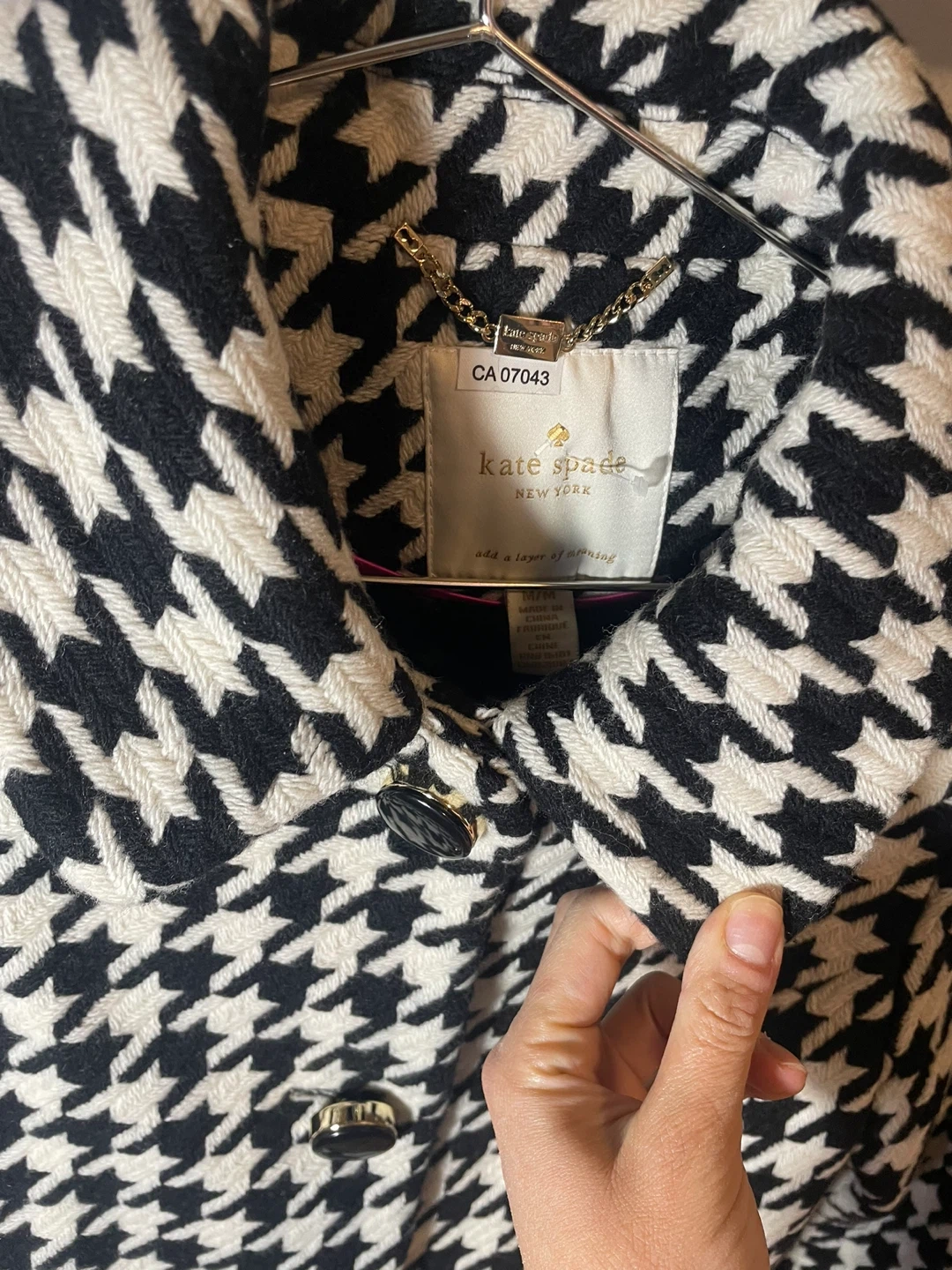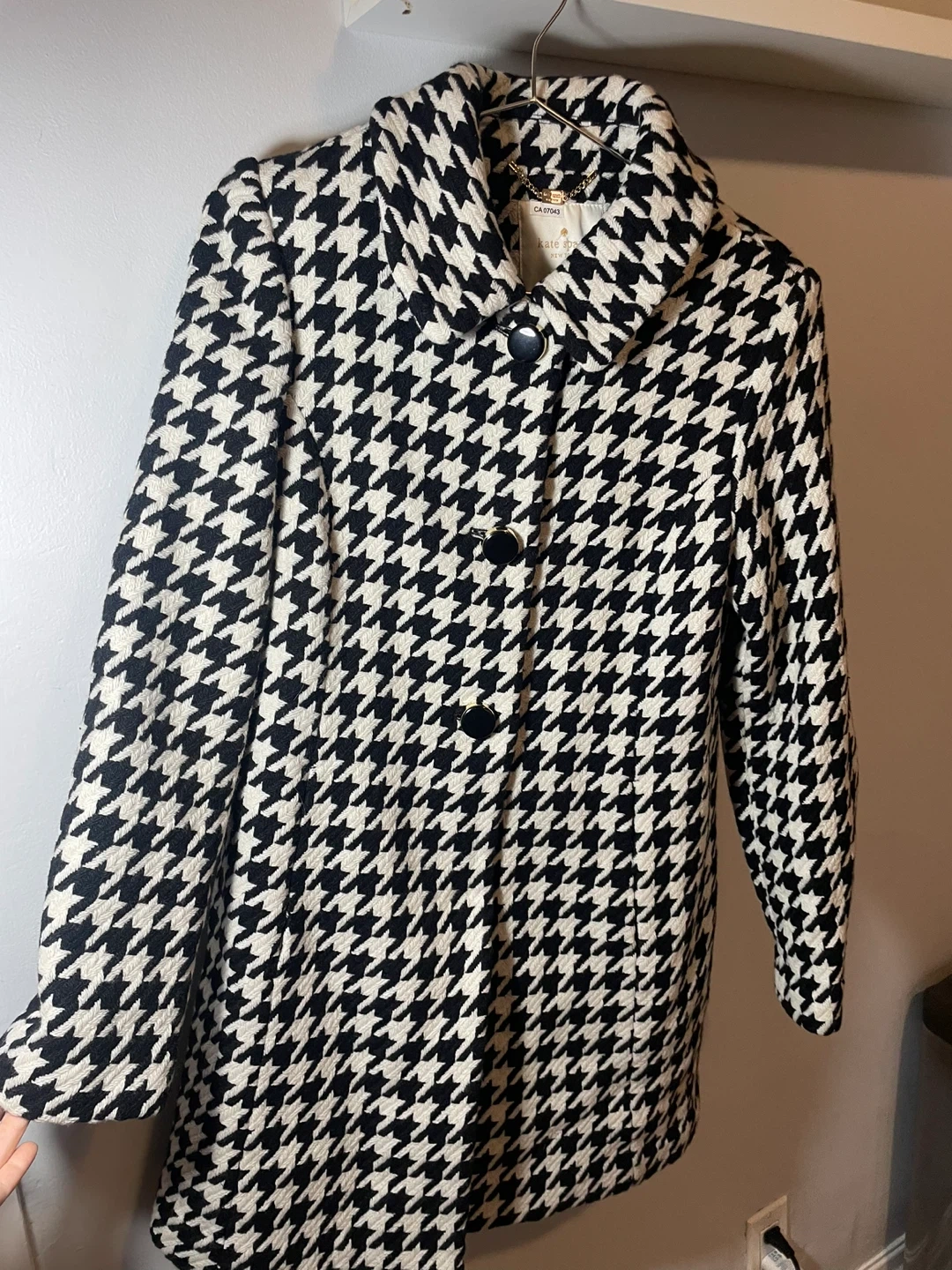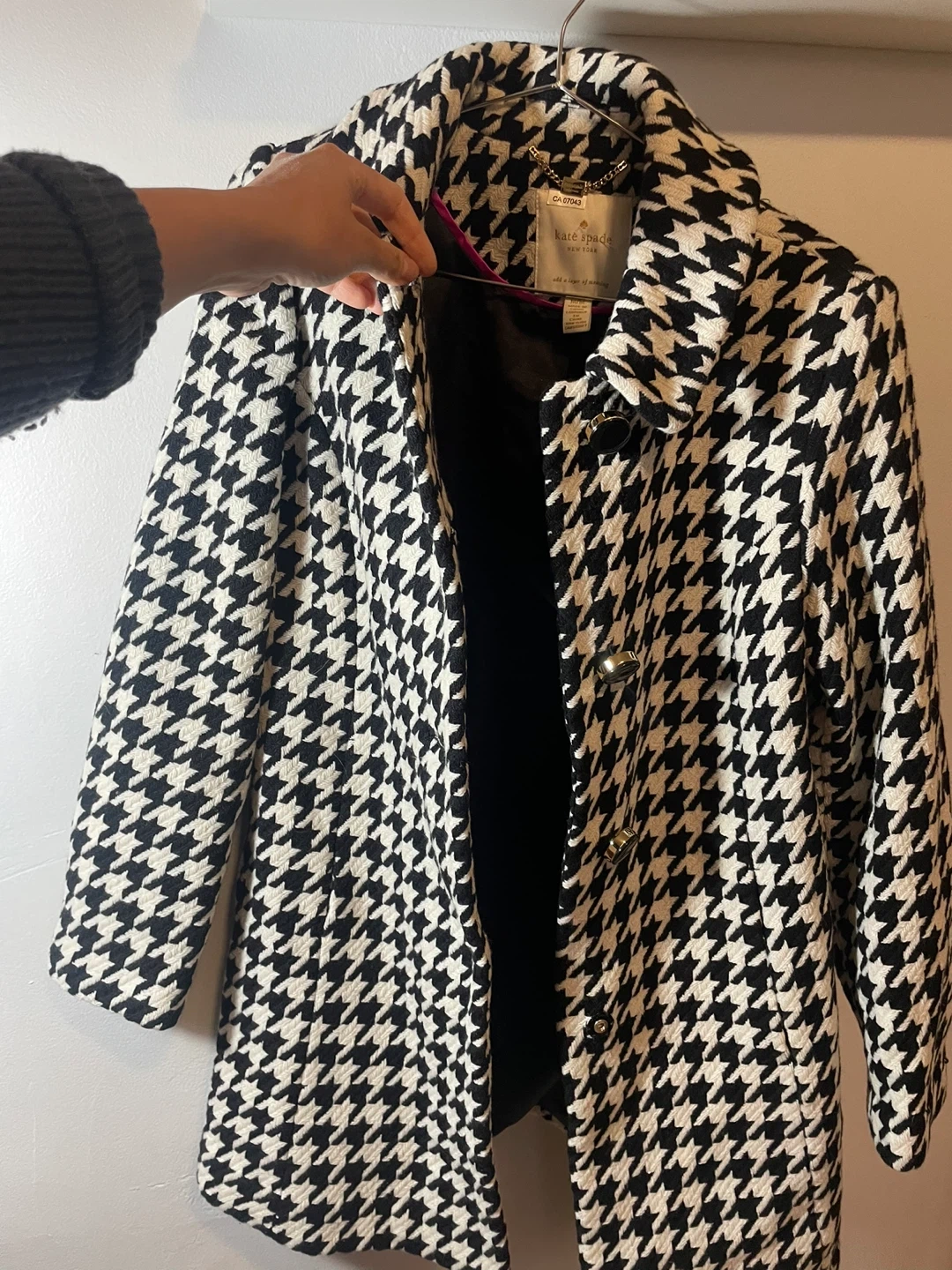 307Selling a Kate Spade coat in a classic houndstooth pattern! It's a size medium and perfect for adding a stylish touch to your wardrobe. If ad is still on is AVAILABLE Pick up at Dufferin and st Clair See my other listings for a bundle pricing if interested in another item :) Cash only. Price is firm unless you want more than 1 item - Items can be only put on hold with a deposit, otherwise first come first serve basis.