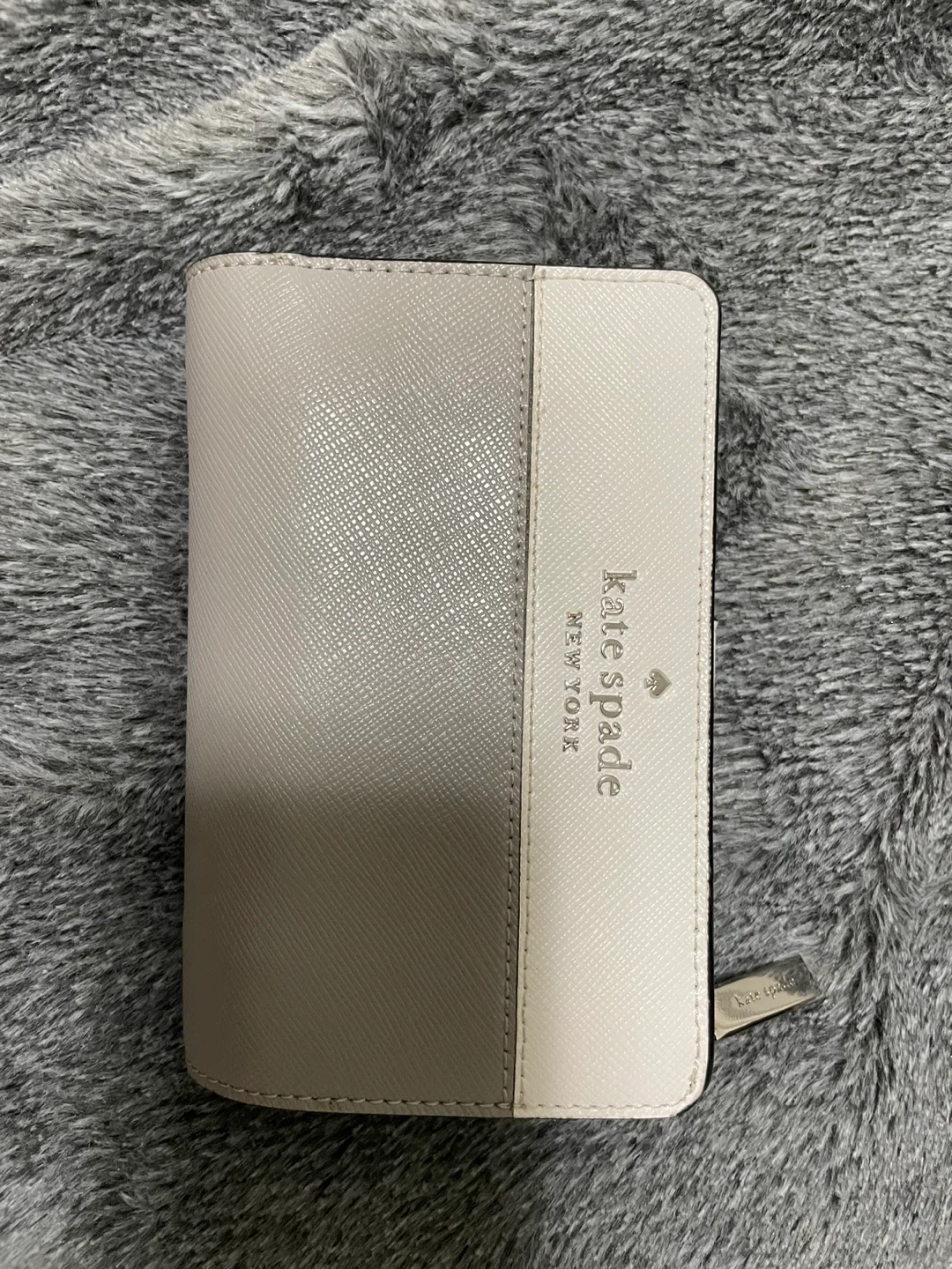 10Selling a Kate Spade New York wallet in a lovely light grey colour. It features several card slots and a zip compartment for change. Perfect for keeping your essentials organized!