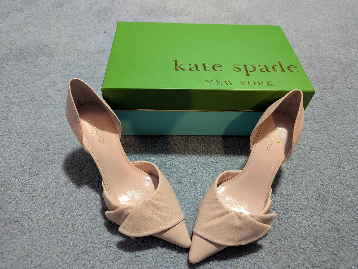 10Selling a pair of Kate Spade kitten heels in a lovely light pink colour. Size 7. Worn once. Comes with the original box and shopping bag. These heels are in great condition, and make a stylish addition to any wardrobe. No low-balls please.