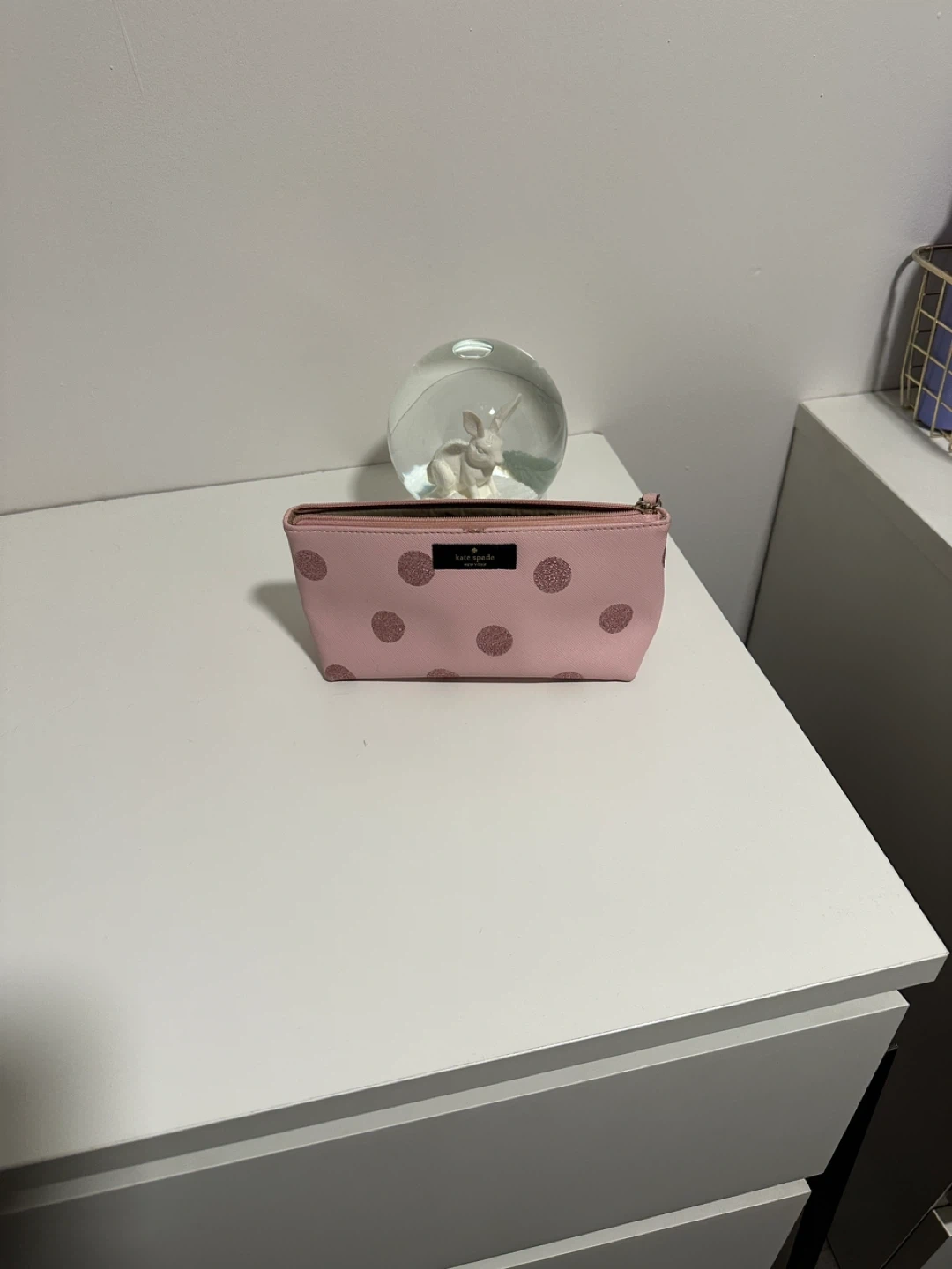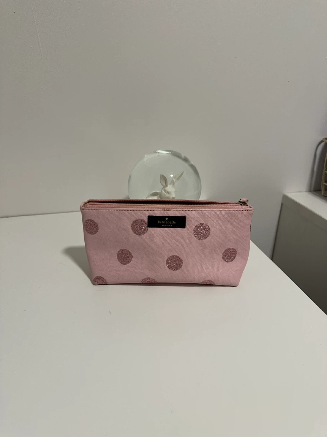 291Selling a cute Kate Spade cosmetic pouch! It's pink with a polka dot design. Perfect for storing your makeup or other small essentials.
