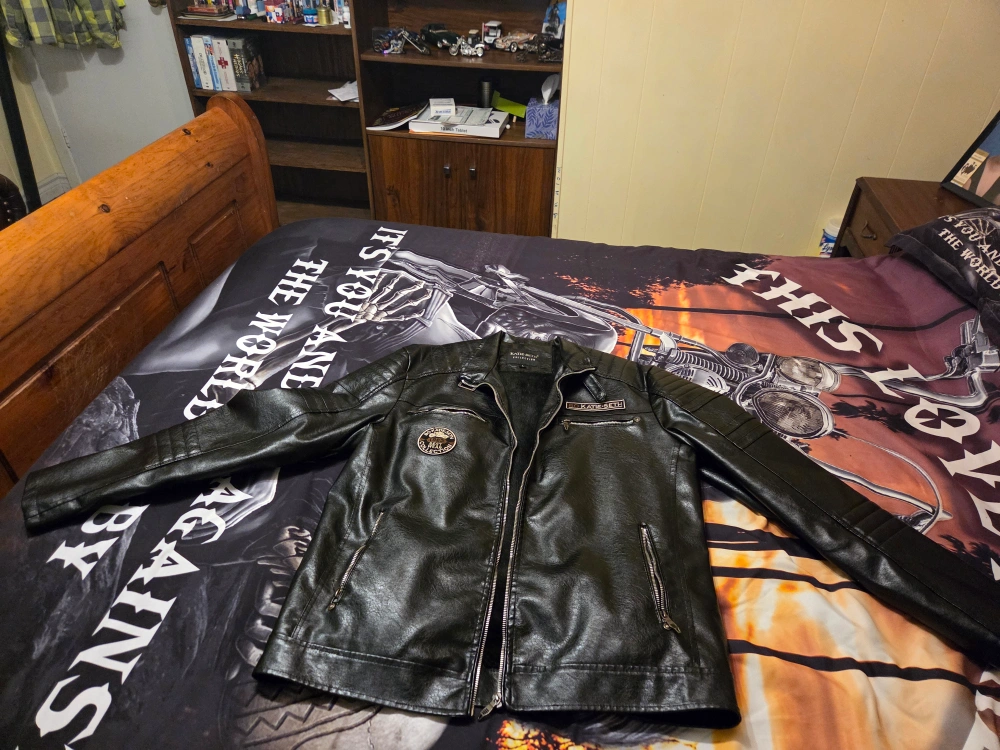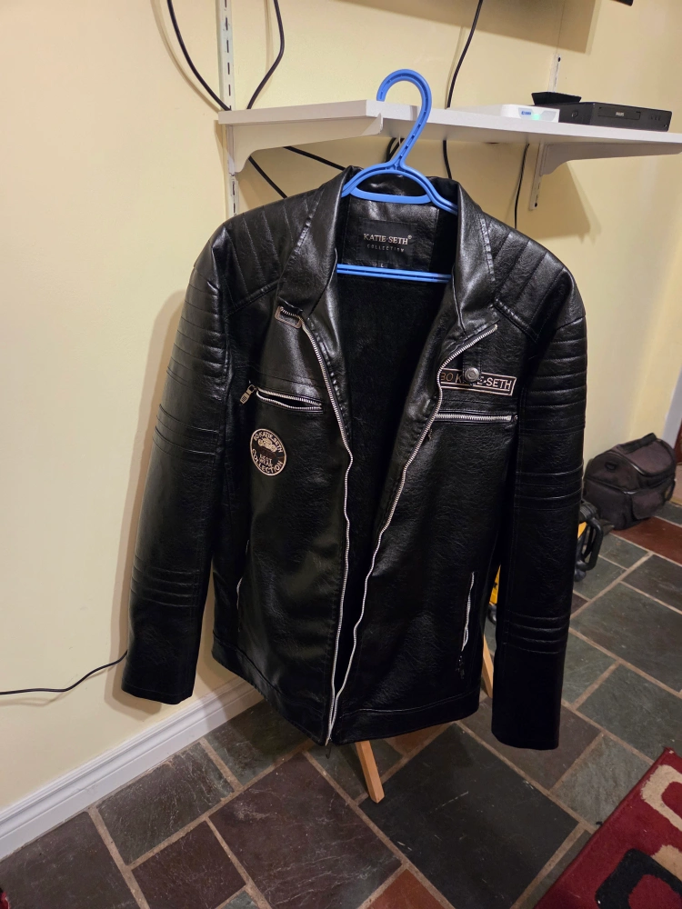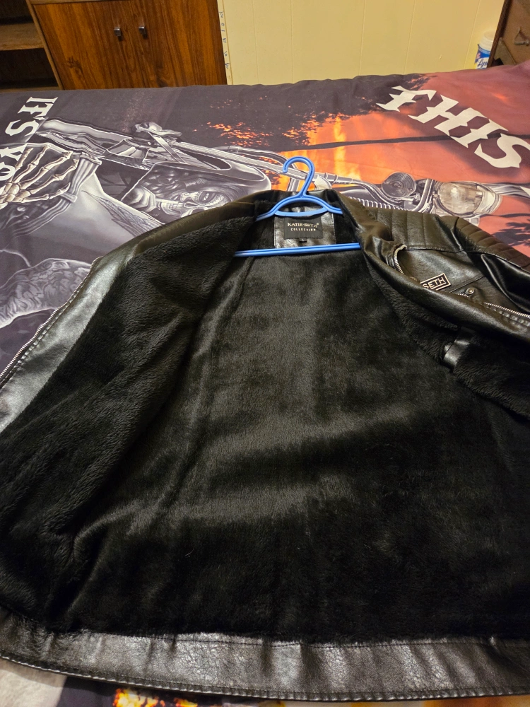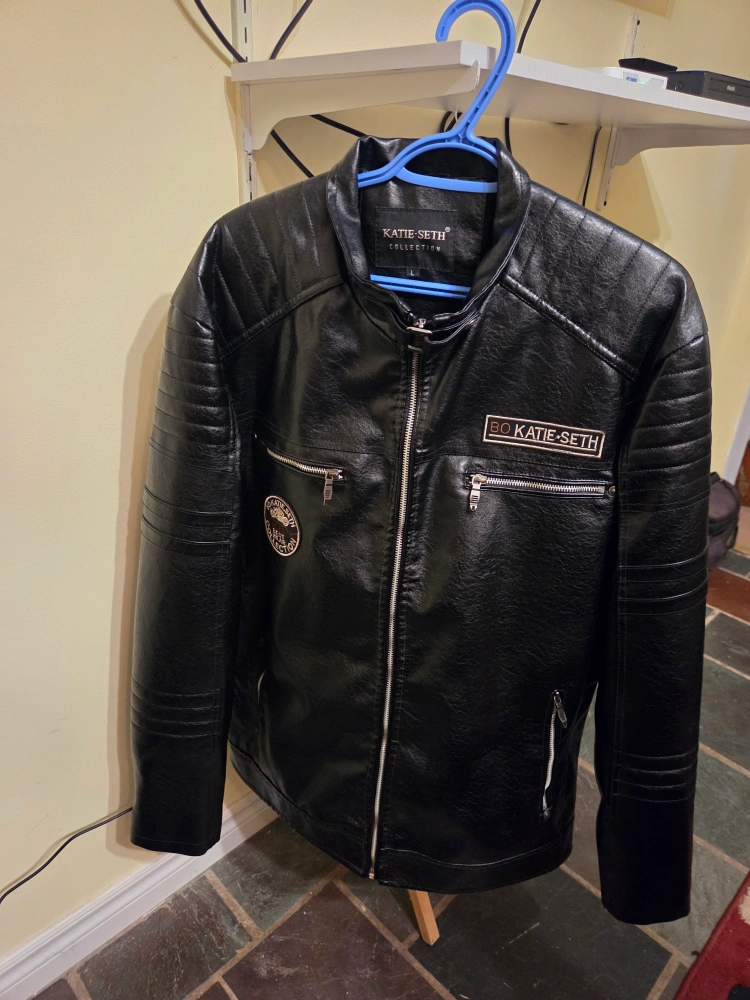 26Selling a Katie-Seth Collection leather jacket in black, size L. It's in great condition and ready for a new home! The material feels nice and sturdy, perfect for adding a bit of edge to your outfit.