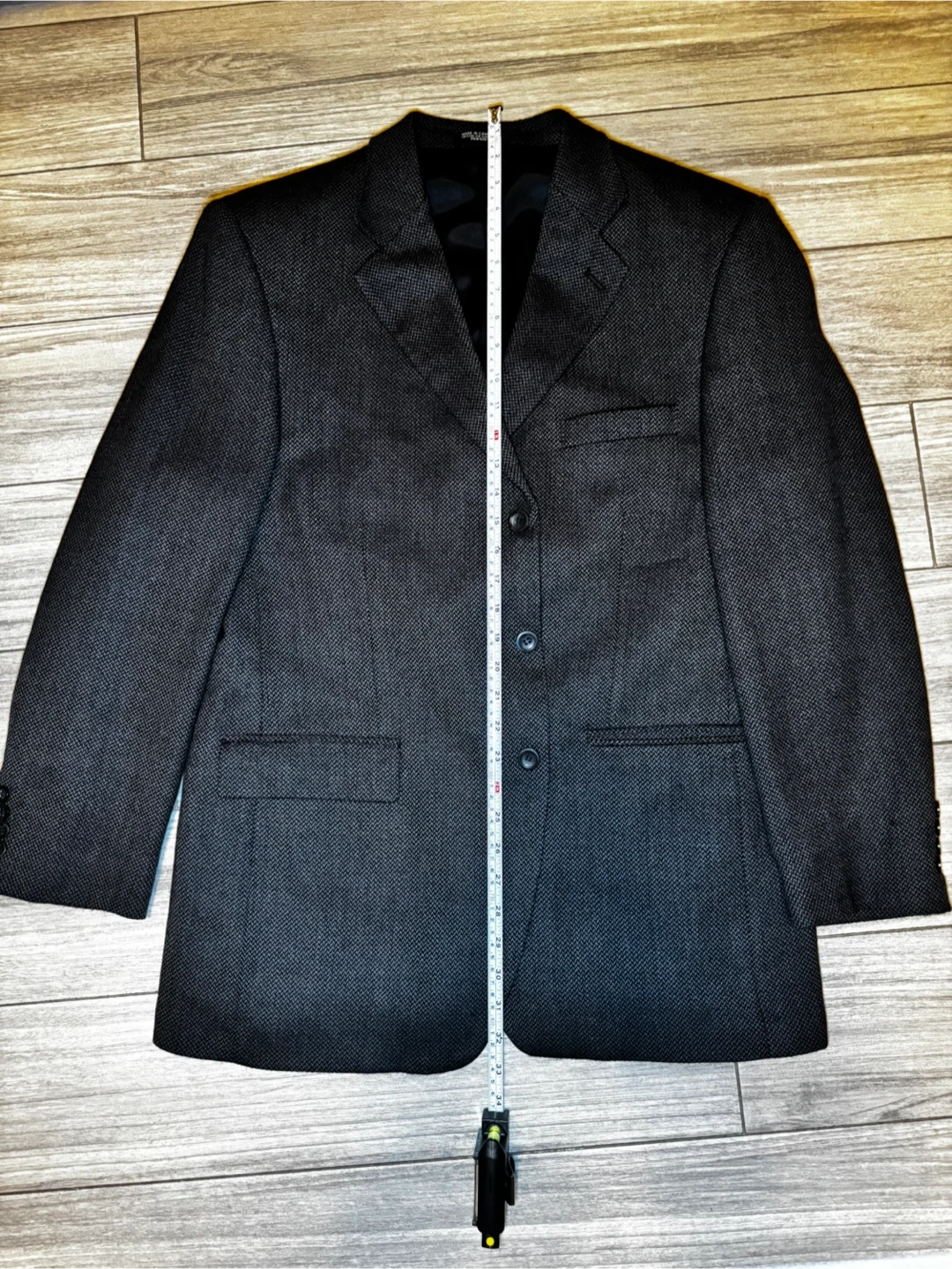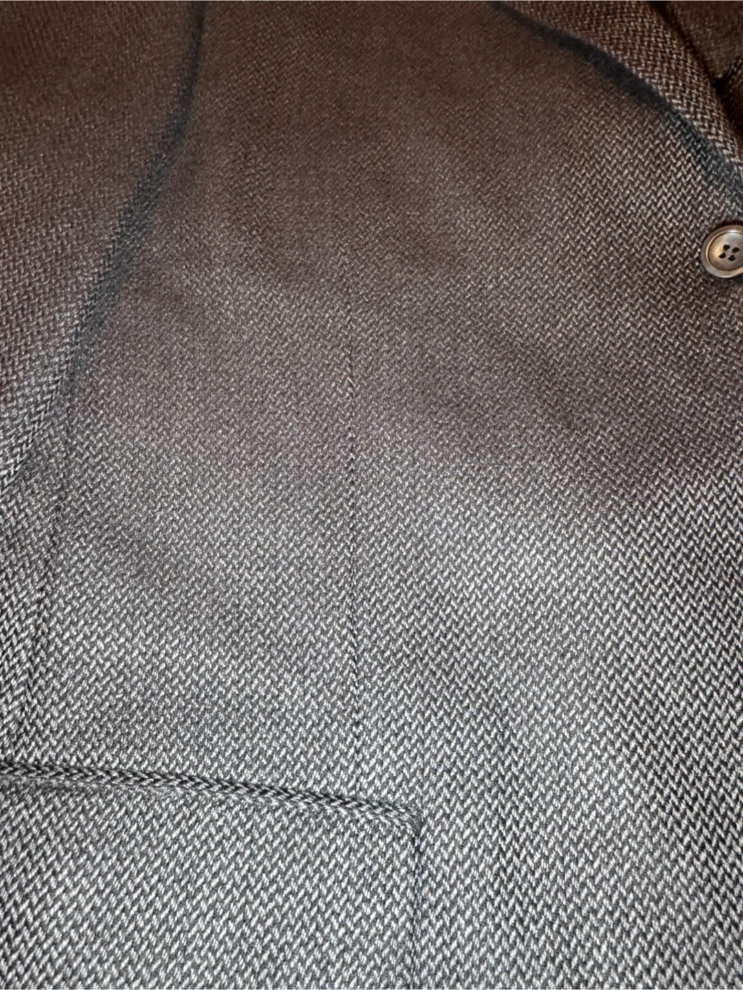 The Stafford Gray Wool Cashmere Tweed Herringbone Blazer in size 42R is a classic and stylish piece for formal or business occasions. Made from a luxurious blend of cashmere and wool, this blazer features a herringbone pattern on a tweed fabric, with a notch lapel and double-vented back for a sophisticated look. The regular fit and four-button sleeve detail add to the overall elegance of this timeless piece from the Stafford brand, perfect for the winter and fall seasons.