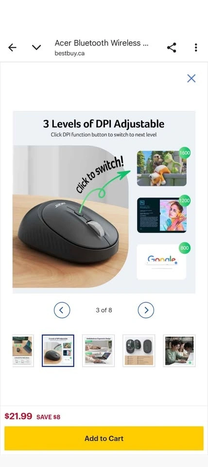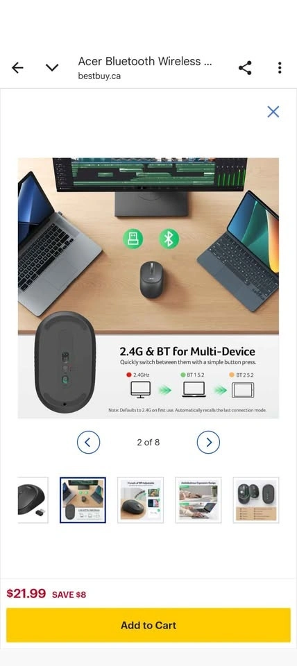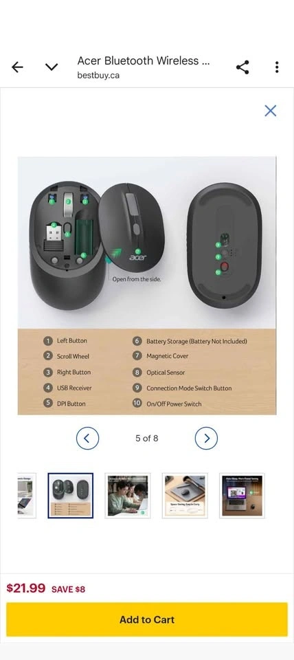 Never used Acer Bluetooth Wireless Mouse for Computer & Laptop (BT5.2+2.4GHz). Small to Medium Size, Left & Right Handed. Office USB Mouse with USBA Receiver, 4 Buttons - Black. Let me know if you're interested!