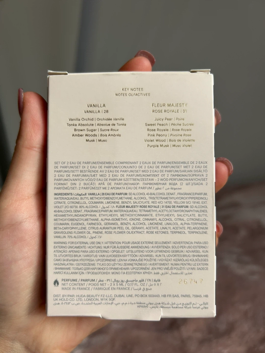 157Selling a cute Kayali miniature perfume set! It includes two scents: Vanilla 28 and Fleur Majesty Rose Royale 31. Perfect as a gift or for travel. Box included