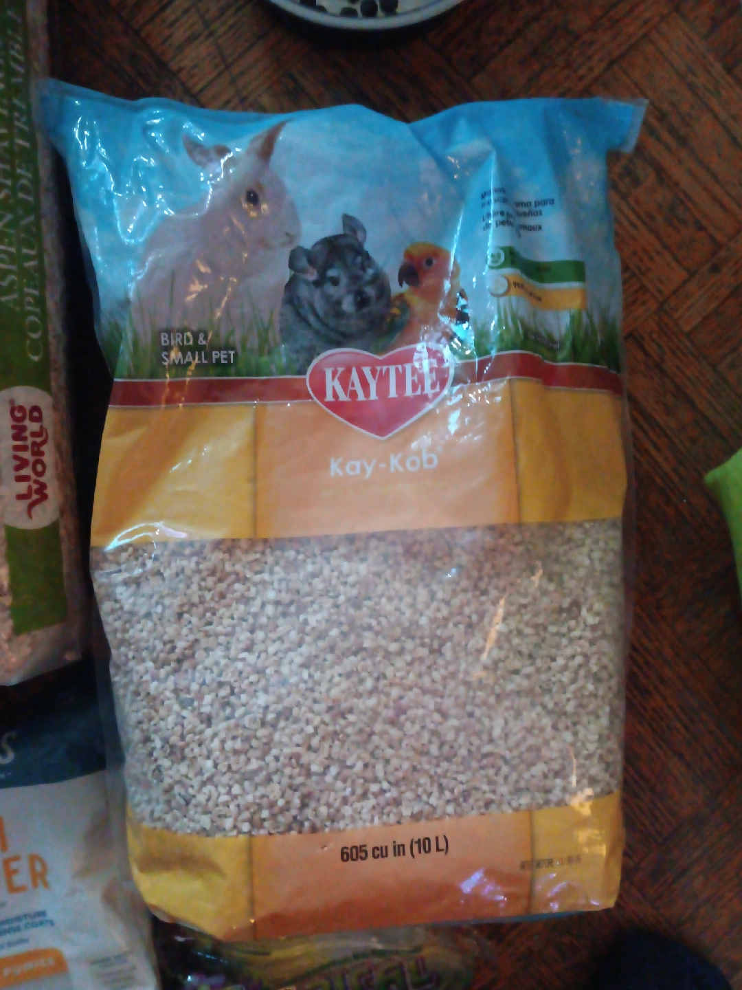 1000+Kaytee Kay-Kob is perfect for birds and small pets. It comes in a 605 cu in (10 L) bag sealed 2 bags available asking $ 5 each 647-203-0411