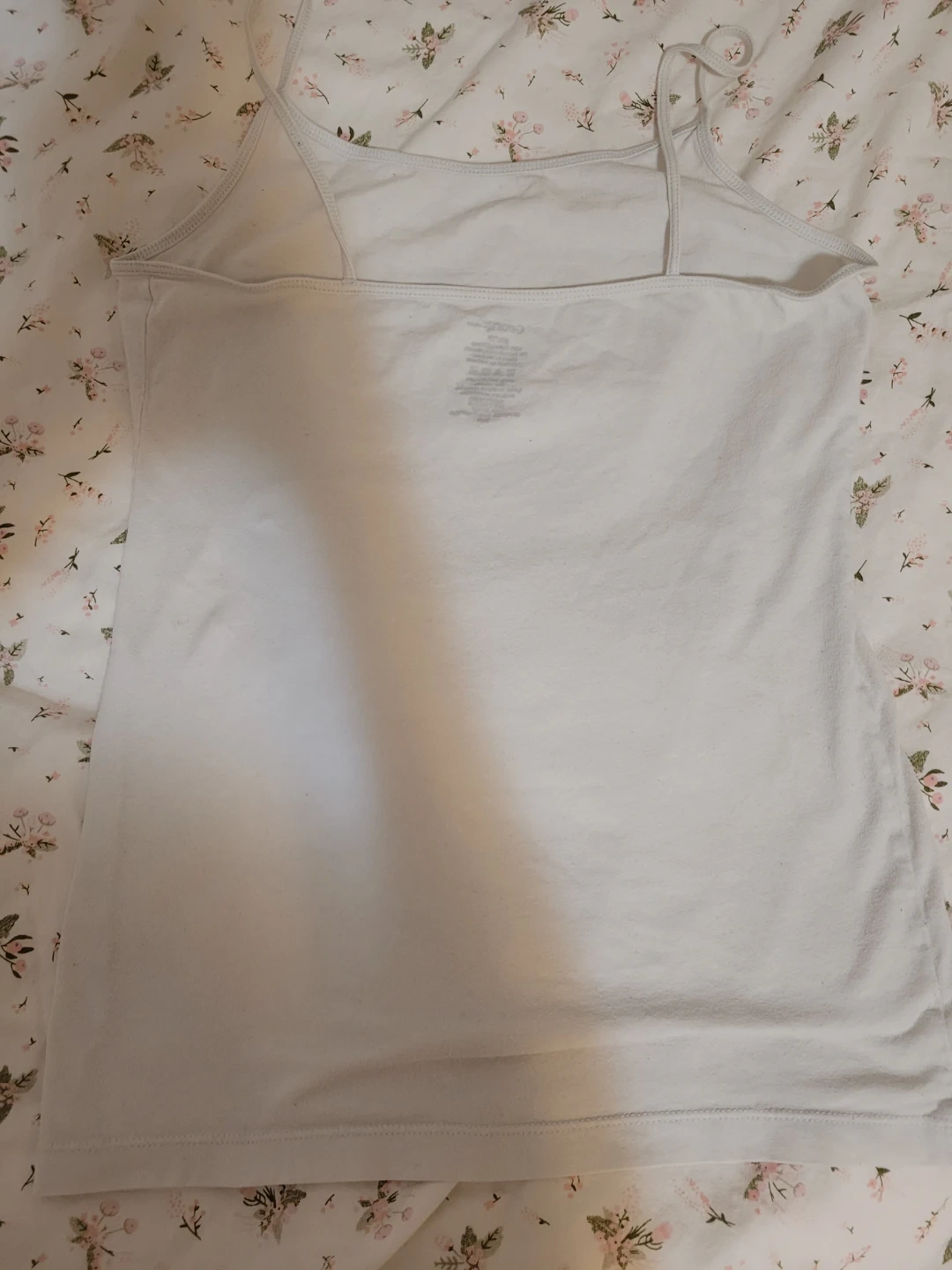 A comfortable white camisole tank top. Perfect for layering under sweaters or wearing on its own.