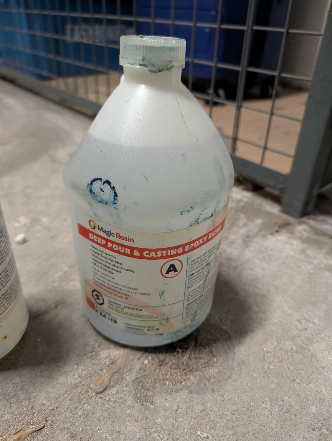 This is Magic Resin Deep Pour & Casting Epoxy Resin with a compatible hardener. It's formulated for creating clear, high-gloss pours up to 4 inches thick. The epoxy has a 2A:1B mix ratio for optimal results. There's a ton left because I only used it once.