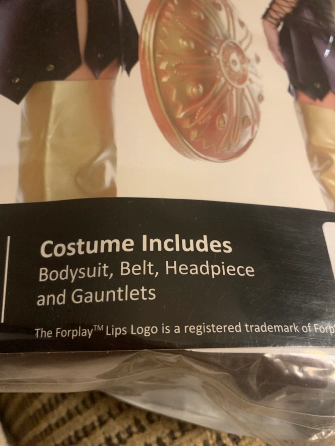 Selling a Forplay Victorious costume in adult size S/M! The costume includes a bodysuit, belt, headpiece, and gauntlets. Great for Halloween or cosplay.
