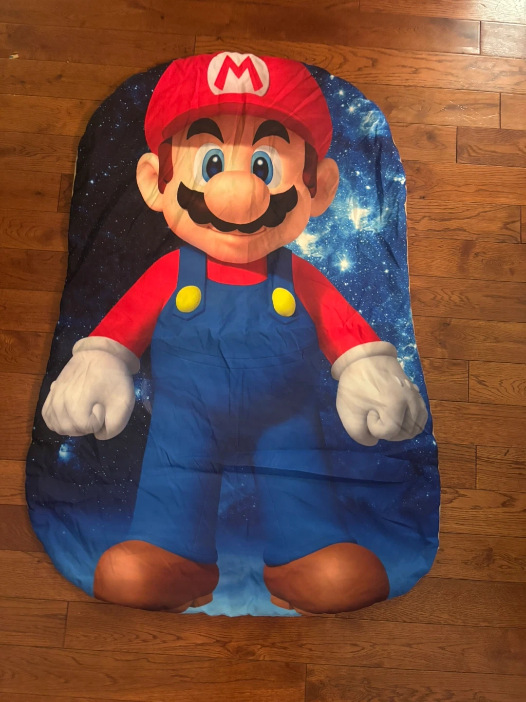 This Super Mario blanket features Mario on a starry background. It's perfect for kids who love the Super Mario franchise. Made with soft, durable material.