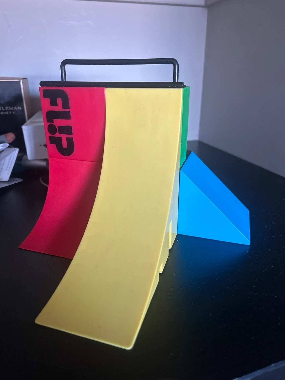 This Tech Deck fingerboard ramp set comes with a ramp and a green riser block. It's made of durable plastic. A great addition for any fingerboard enthusiast!