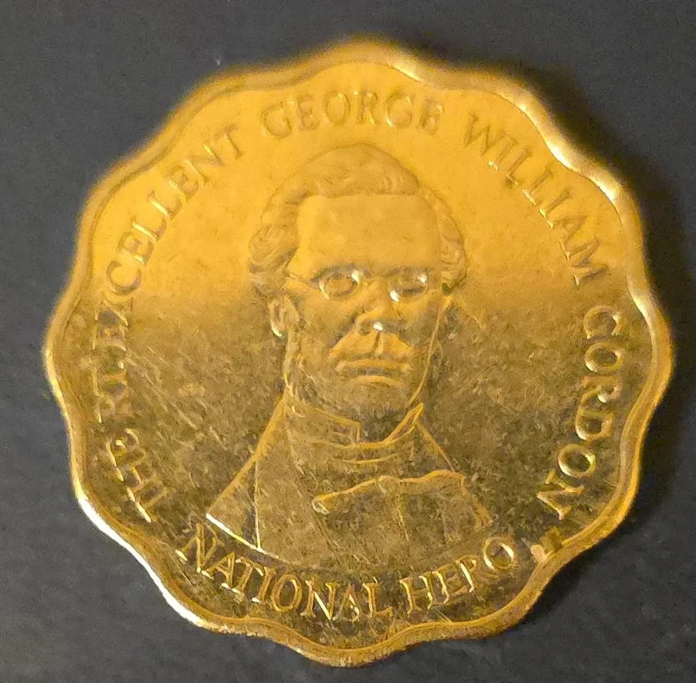 Commemorative coin from Jamaica featuring George William Gordon, a national hero. The coin is dated 2000 and has a denomination of 10 dollars. It's a unique piece for collectors.