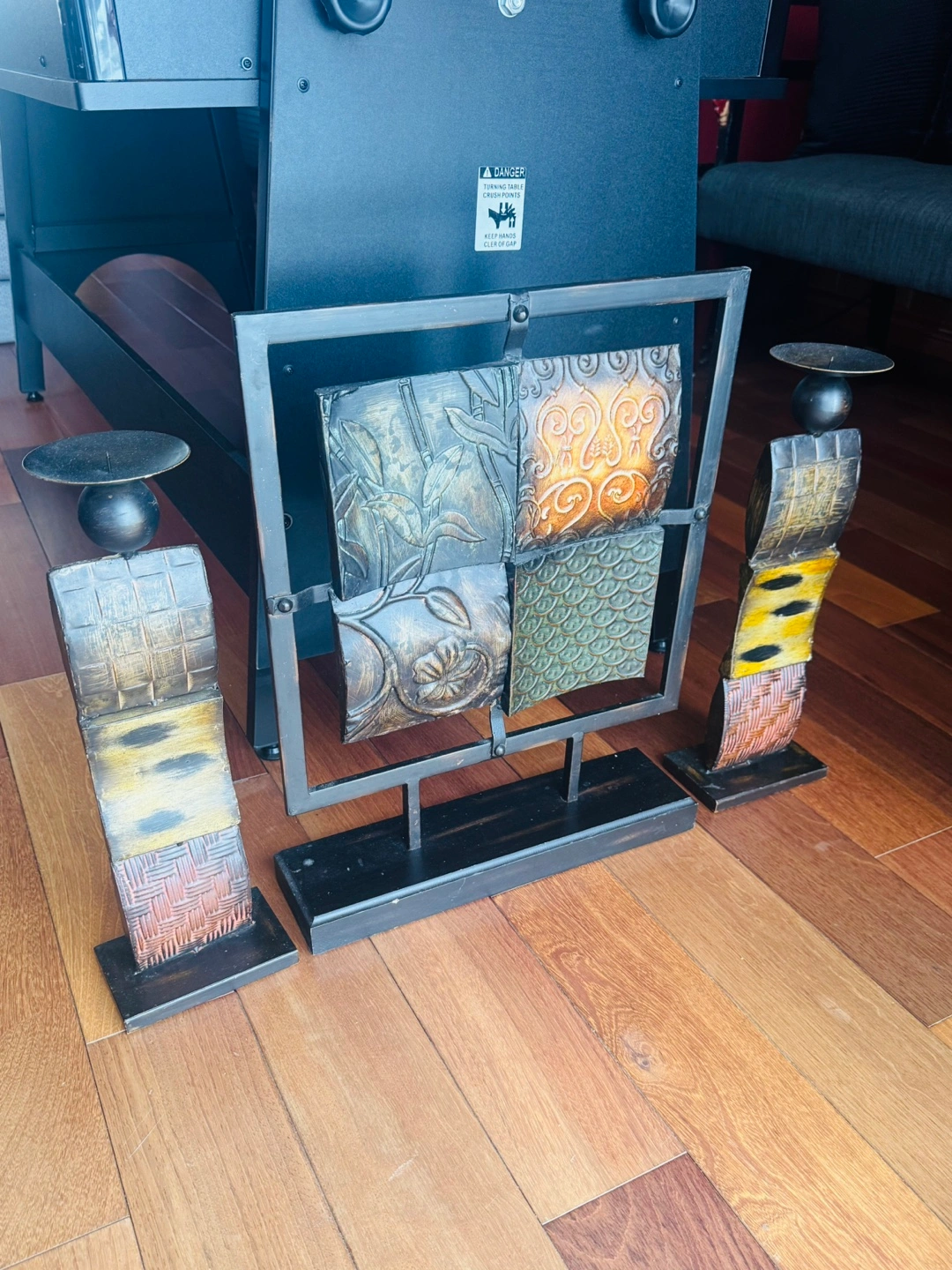 Set of 2 Metal Candle Holders and Decorative Wall Art