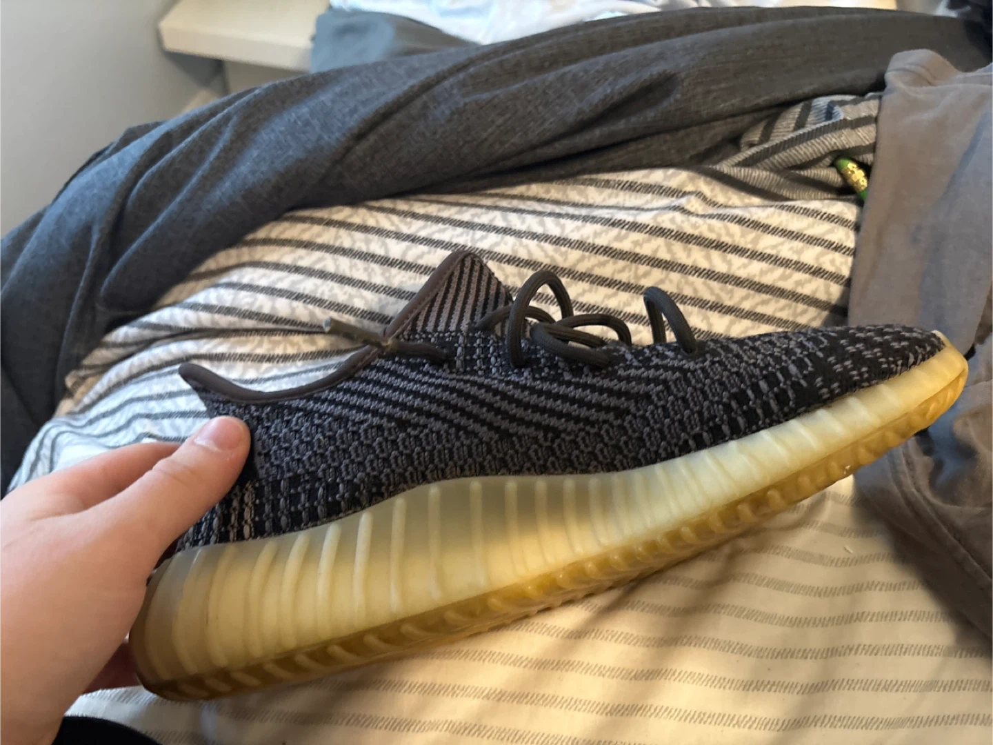 Selling a pair of Adidas Yeezy Boost 350 V2 carbon colourway! These are super comfortable and stylish. Great for everyday wear!