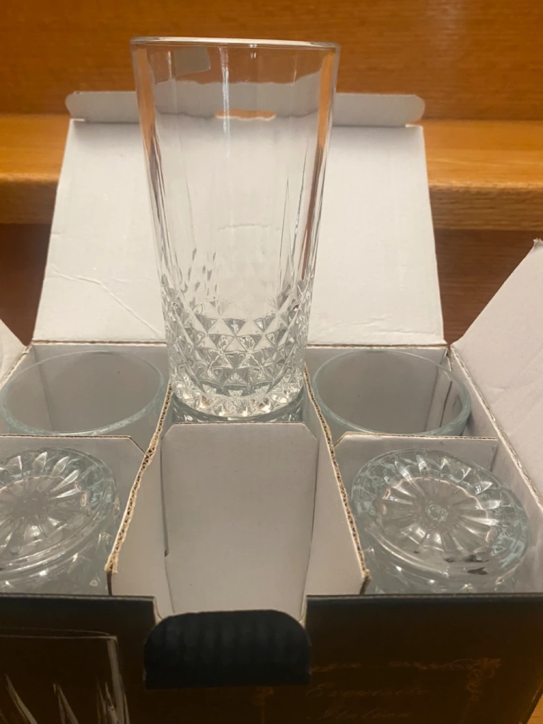 This set includes six premium water tumblers from Blue Birds. They are made of clear glass with a diamond-cut pattern. These tumblers are great for everyday use or special occasions!