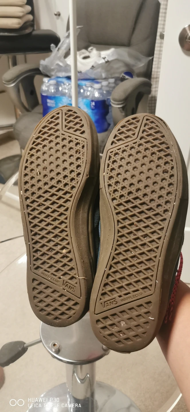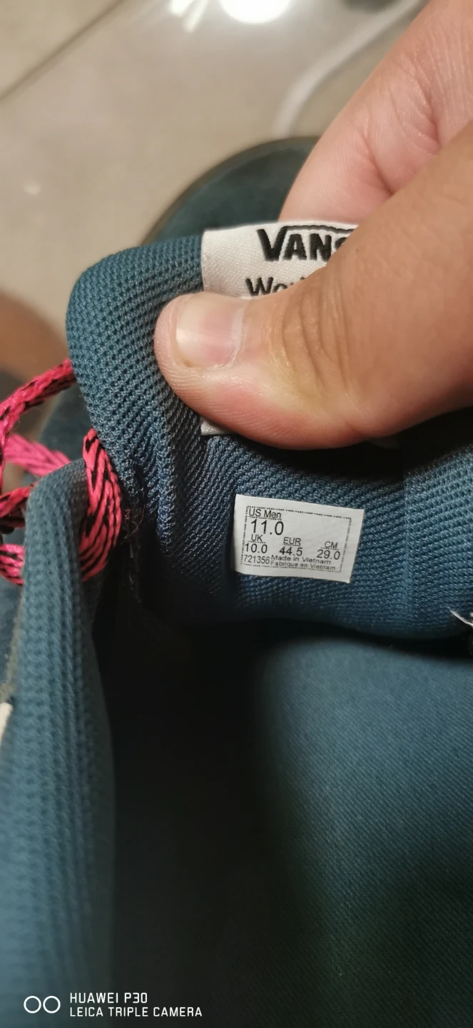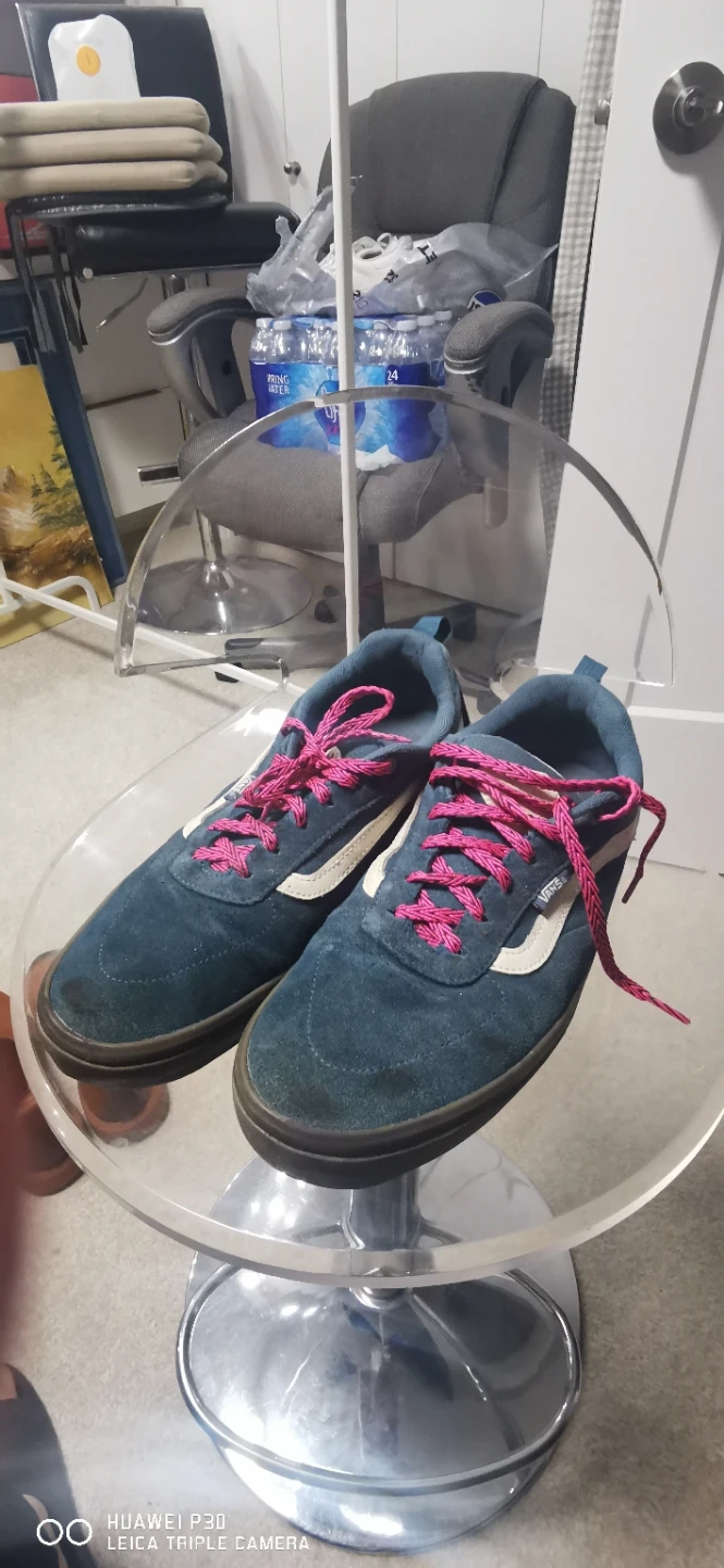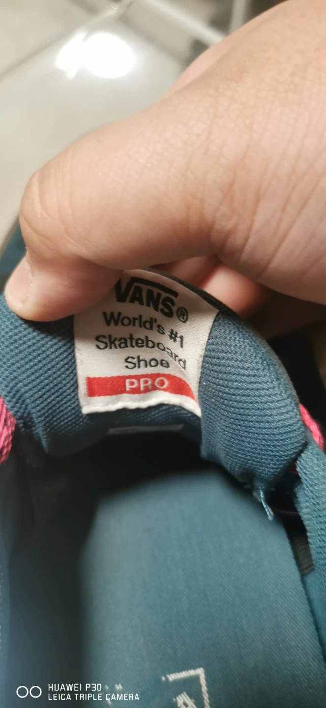 Vans "World's #1" Skateboarding Shoe in size US Men 11.0. These shoes are blue suede with white accents and pink laces. They feature the Vans WaffleCup sole.