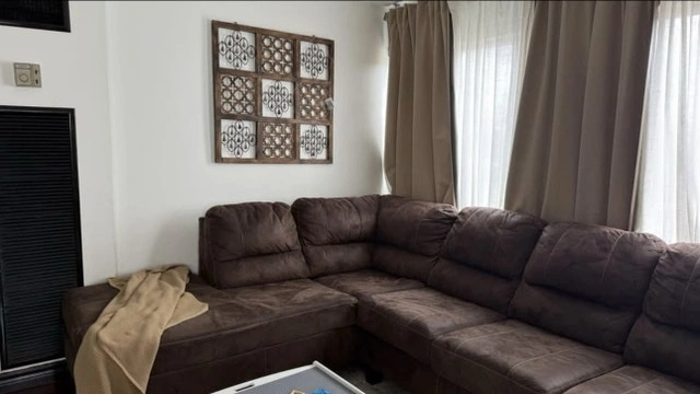 Bought it from Ashley's for $2400 - very good, like-new condition. If you love the idea of a luxe look that won't break the bank, make yourself comfortable with the alluring walnut brown Maderla sectional. Designed to look like the real thing, it's wrapped in a practical faux leather loaded with natural tonal variation and a soft hand feel. Appealing to a contemporary taste, its jumbo stitching, tufted styling and pillow top armrests are indulgently comfortable, with a streamlined look that tops off the high-end aesthetic made for everyday living.
