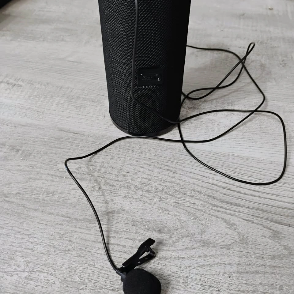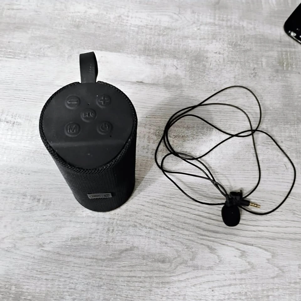 This speaker and microphone set is brand new and in perfect working condition. The volume is loud, and the speaker is Bluetooth enabled. Instructions for the microphone are included.