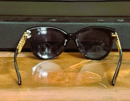 Foster Grant Black & Gold Filigree Metal Temple Sunglasses