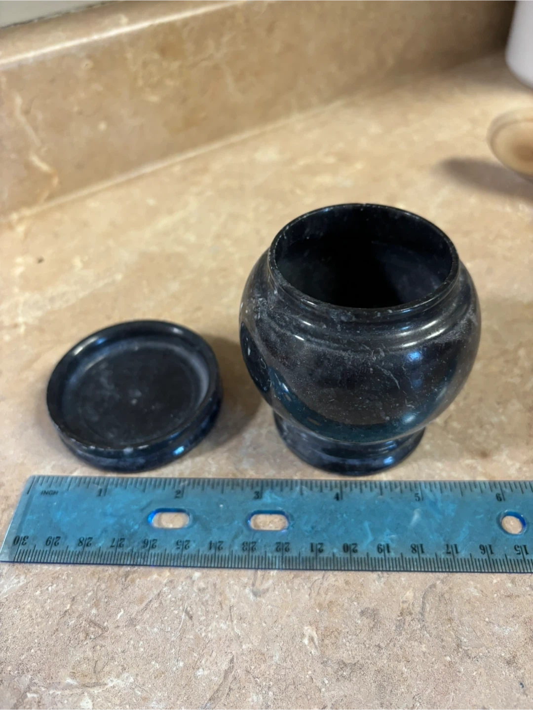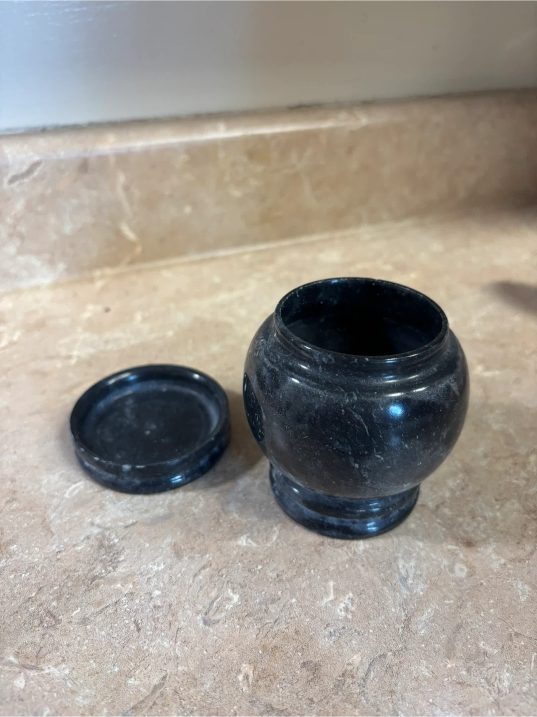 Buy & SellSmall Black Marble Jar with LidSmall Black Marble Jar with Lid$20A small, dark marble jar with a matching lid. It's ideal for storing small trinkets or spices. Marble material.WHERE TO MEET122 ave and 190 stView MapSELLERverifiedTroyPitt Meadows1084 reviews0 chats·0 favorites·2 viewsSEND CHAT TO SELLERHi Troy! I’m interested in your listing.Hi Troy! I’m interested in your listing.Get the Karrot app to chatSign In to chat