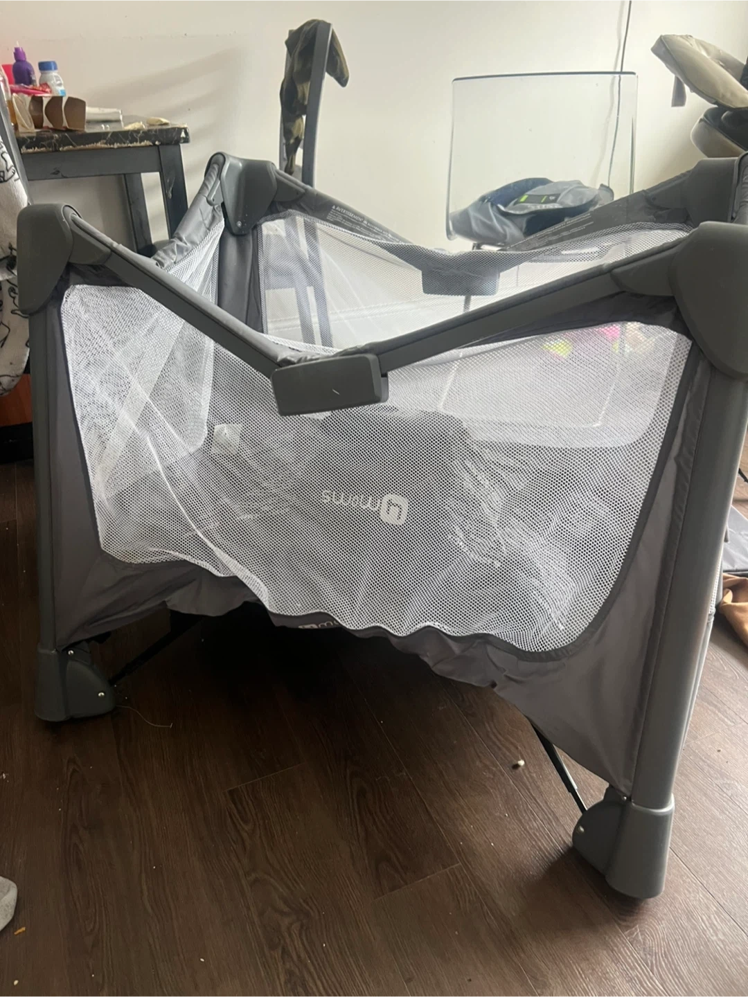 This 4moms Breeze Playard is a convenient and portable play space for little ones. It features a push-button fold for easy setup and takedown. It's designed for simple operation and provides a safe area for babies and toddlers.