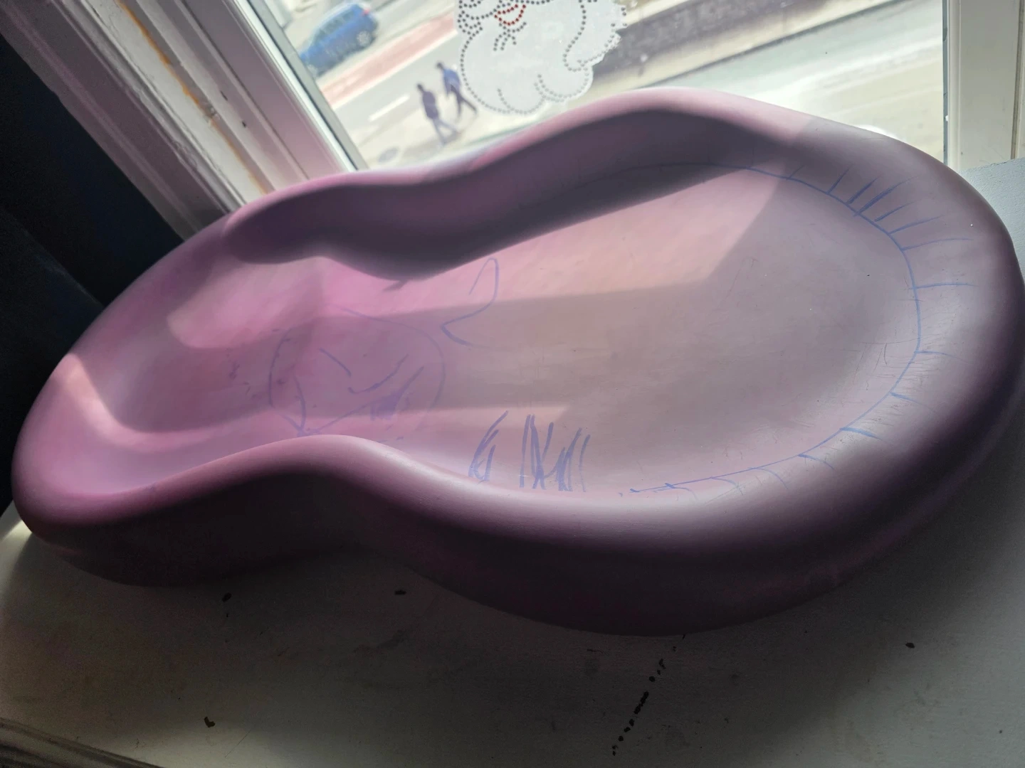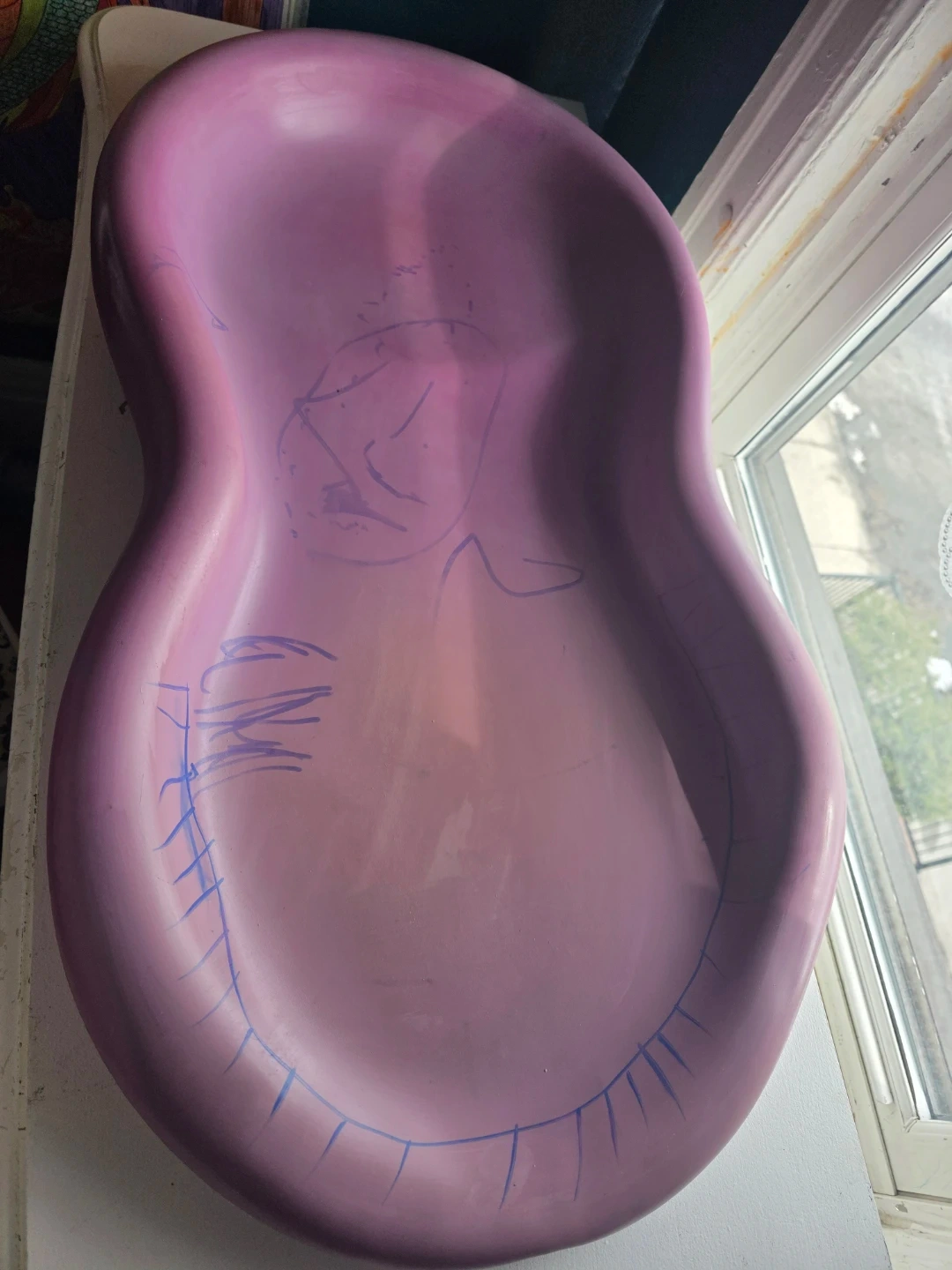Keekaroo Peanut Changer Pink – The Original Made in USA easy-to-clean changing pad and The only shell over foam, fully impermeable to fluid. It comes with some art from my kid :)