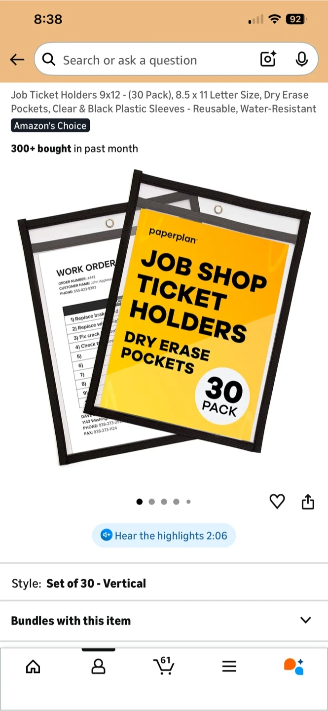 (Look at all pictures, Click on the picture you can see it in detail, The sizes are shown at the back.)This is a 30 pack of reusable, eco-friendly, and durable job shop ticket holders. They're perfect for organizing and protecting your documents. (Cash only) (You must come pick up your items. If you come to the apartment, I will take the goods to the lobby)